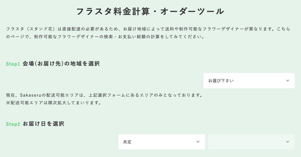 楽屋花の場合は、デザイナー一覧ページの[🔍デザイナーを条件から絞り込む]から、お届け日を設定すると対応可能なフラワーデザイナーをご確認いただけます。