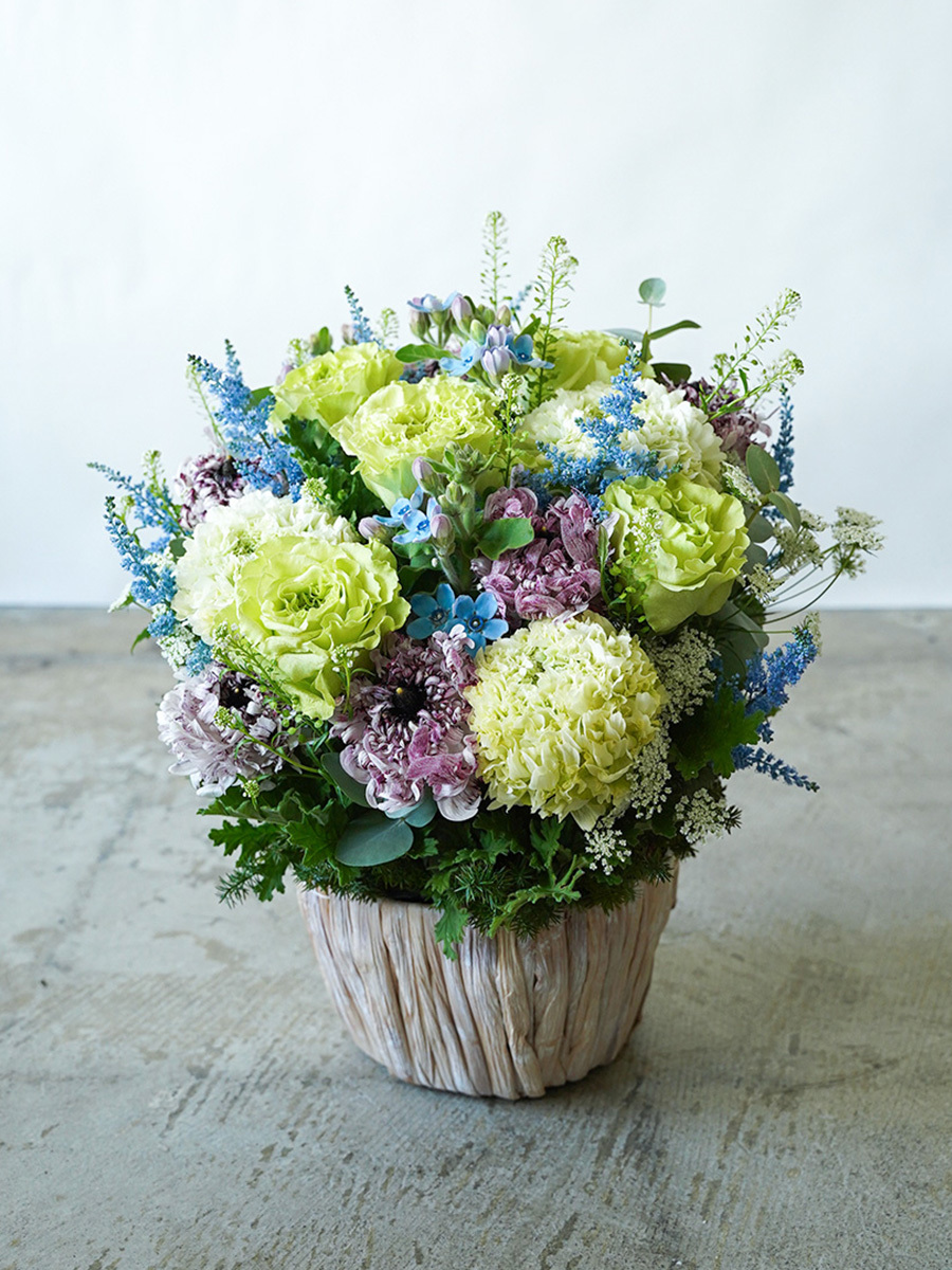 多くの場合ご希望に沿うことが出来ない事が多いですので、もしお花のご指定をされ、アレンジ花に入れることが出来れば「ラッキー」位のスタンスで居て頂けますと、大変助かります。
