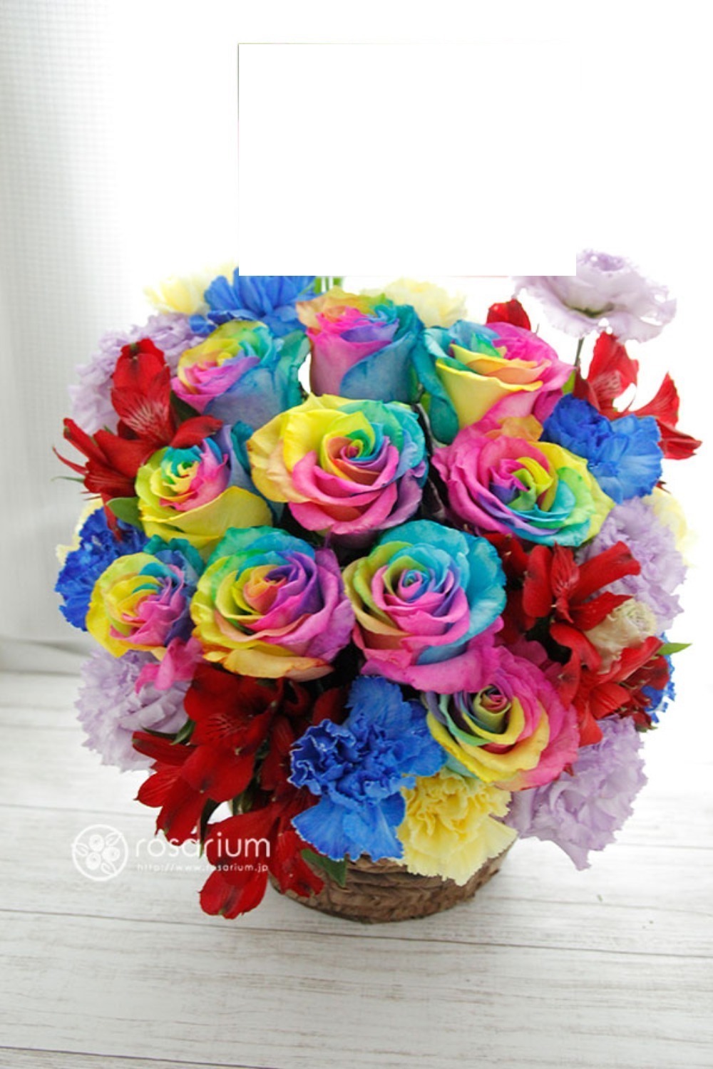 ※僕自身レインボーローズが美しく使われたアレンジメントは見ていて気持ちが明るくなりますので、好きです。