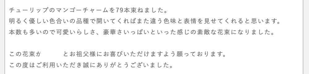 今後お花贈りの機会がある際には、快くお願いできるお花サービスだと感じてもらえたら嬉しいです。