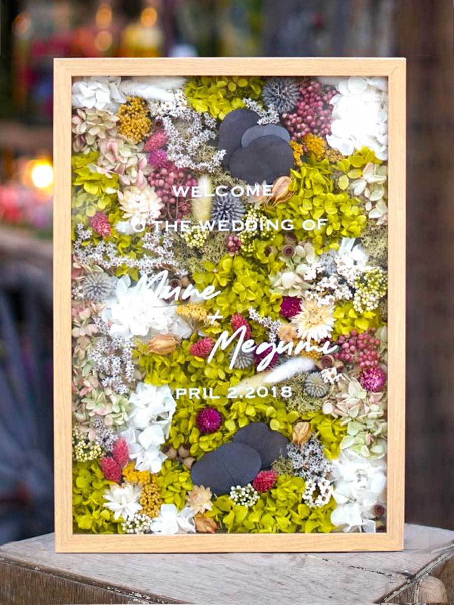 商品開発の部分では、ガラス面に文字を入れられる、インテリアとしても末永く楽しむ事が出来るフレームアレンジメント。