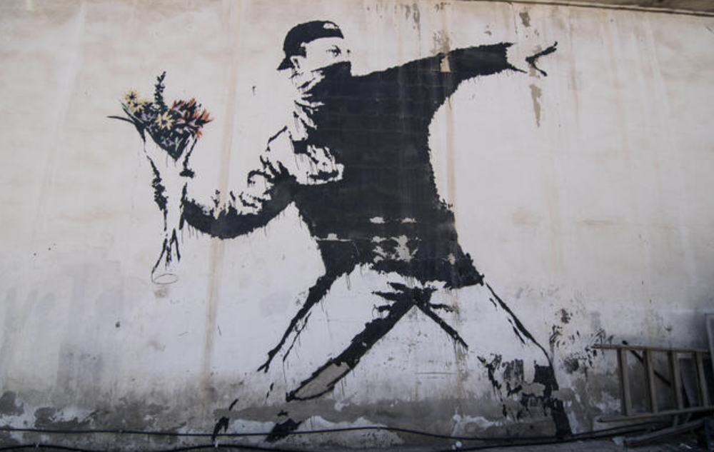 こちらは、バンクシーと呼ばれるアーティストの作品です。