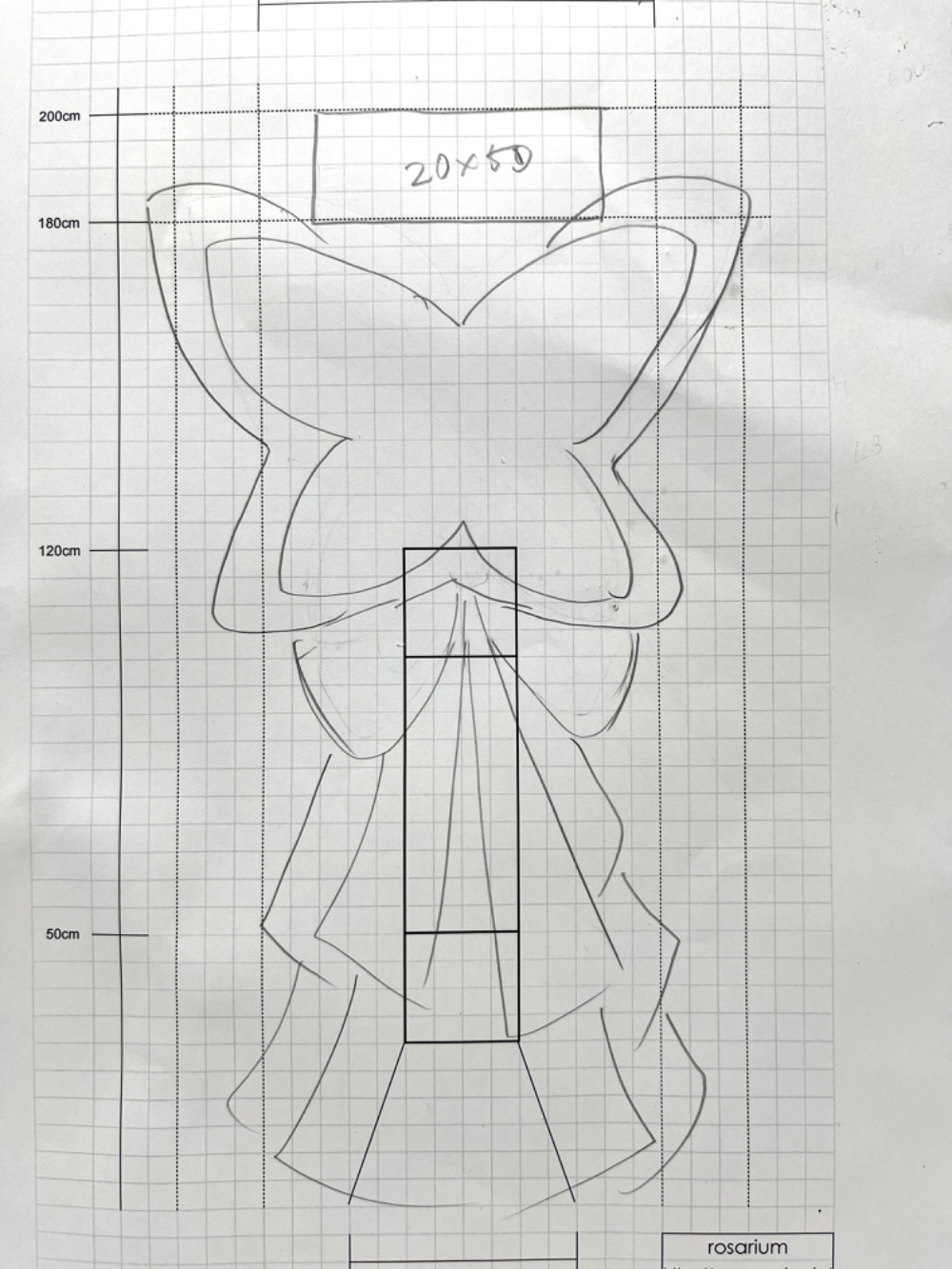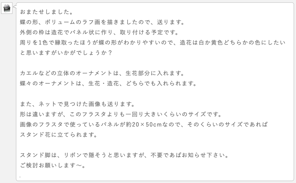 フラワーデザイナー宮崎は、お打ち合わせ時にラフ画を提示し大きさなど細部までお客様とイメージを固め、お話を進めておりました。