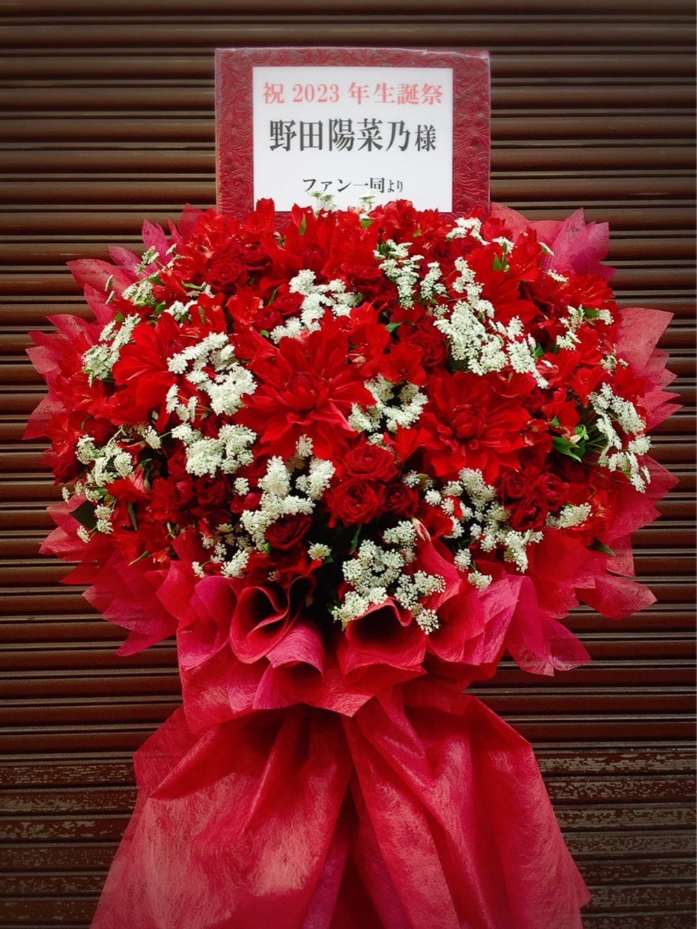 約3年ぶりにアイドル活動に復帰した野田陽菜乃さんへ、復帰後の初の生誕祭を盛大にお祝いしたいという気持ちでお贈りしたスタンド花