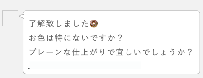 お客様とのチャット内では、ドーナツの絵文字を使ったり、ドーナツの味(色味)についても丁寧にヒアリングさせていただきました。