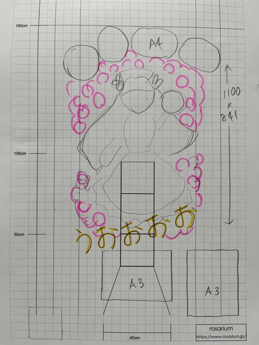 こちらのラフ画をもとに装飾品の取り付ける位置やお花のバランスなど細かい打ち合わせをされておりました。