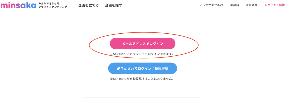 ※Sakaseru・minsaka共に弊社の共通アカウントとなりますので、どちらでパスワード設定頂いても構いません。