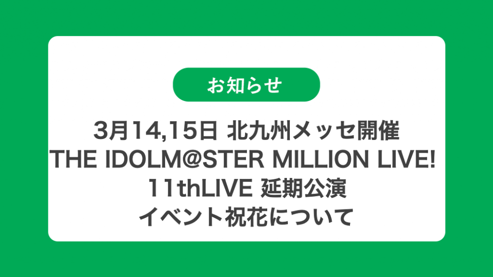 THE IDOLM@STER MILLION LIVE! 11thLIVE 延期公演 の祝花(フラスタ/スタンド花)のお届けについて
