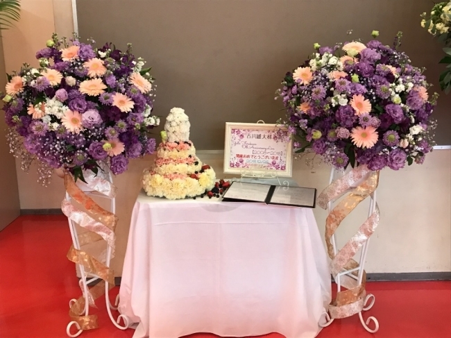 舞台・公演市場の広がり(※1)に伴い、年々需要を拡大していく、一般のファンから俳優やアイドル等、”推し”(※2)の公演へ贈られる祝い花。特に、脚のついた大きな祝い花である「スタンド花」は公演を盛り上げるため、近年一層需要が広がっています。