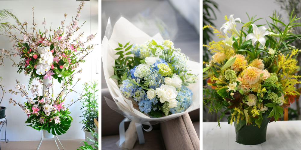 私が特に得意としているのは、花の「色合わせ」です。色の組み合わせひとつで、同じ花材でも印象は大きく変わります。贈るシーンや想いに寄り添いながら、派手すぎず、でも記憶に残る色使いを大切にしています。