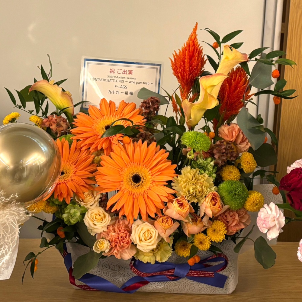 でも、演者さんが撮ってくれた写真だとお花で名前が見えなくなってしまったので、次の機会がある時は札の位置をもう少し高めにしてほしいかなと思いました!