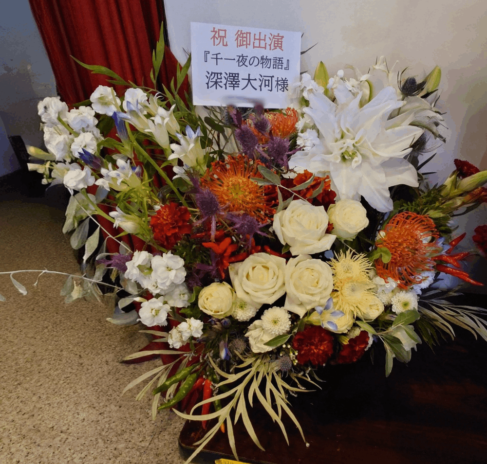 4年に一度ペース 有名な方からの個展御祝のお花を会場に置かれているので少しでも良い感じのお花を探していた所見つけました。個展の作品にもお邪魔にならない感じです。残念ながら個展される前に骨折し入院。出来上がりのお花写真ありがとうございます。
