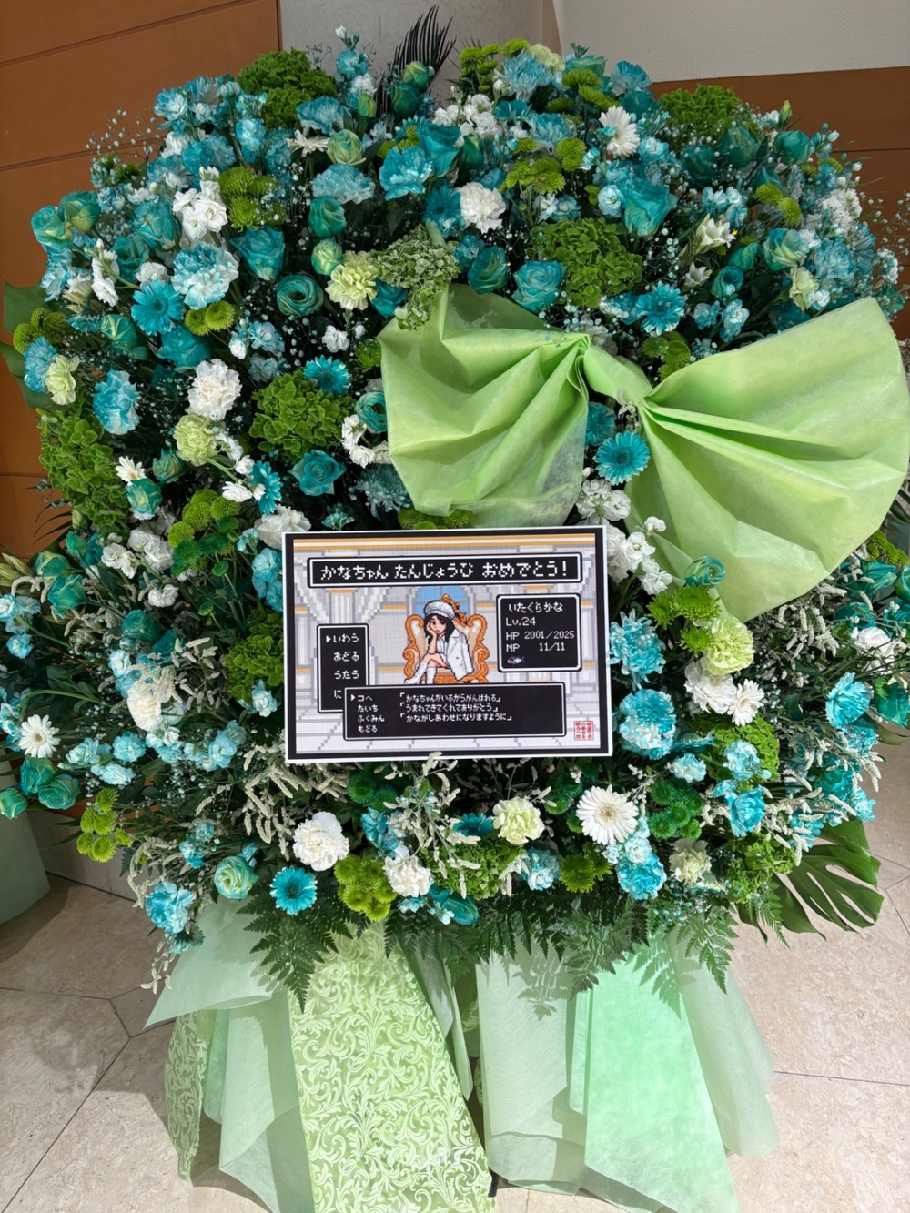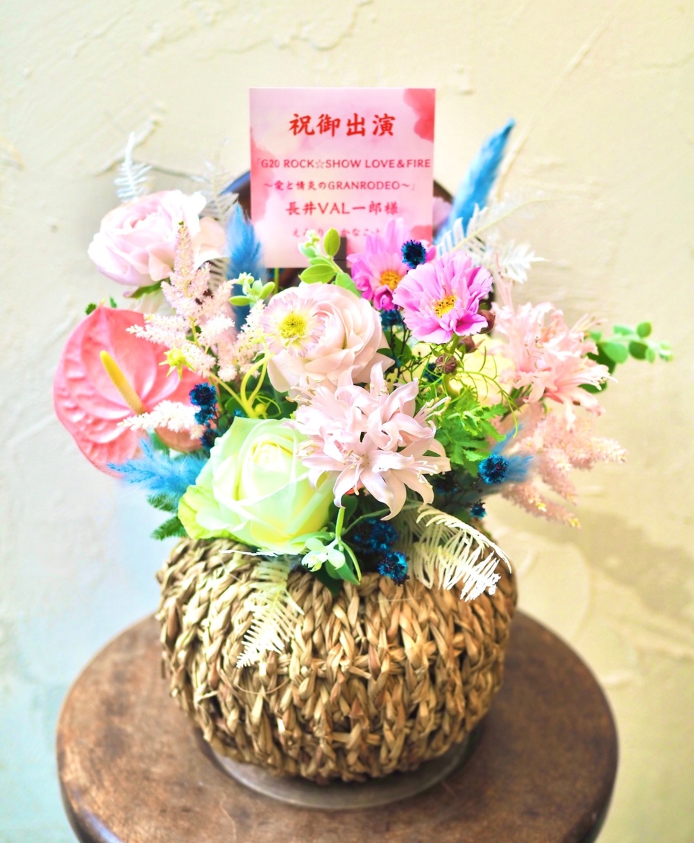 またお花の色に合わせての装飾もして頂きとても素晴らしい楽屋花になりました