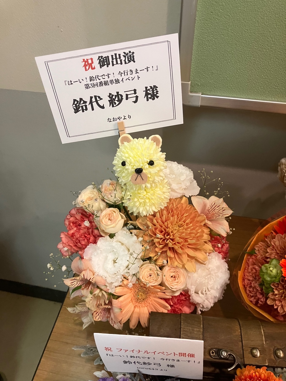 黄色とオレンジで作成してほしいという当方の希望通りのお花で、作成して頂いたので非常に満足しています。