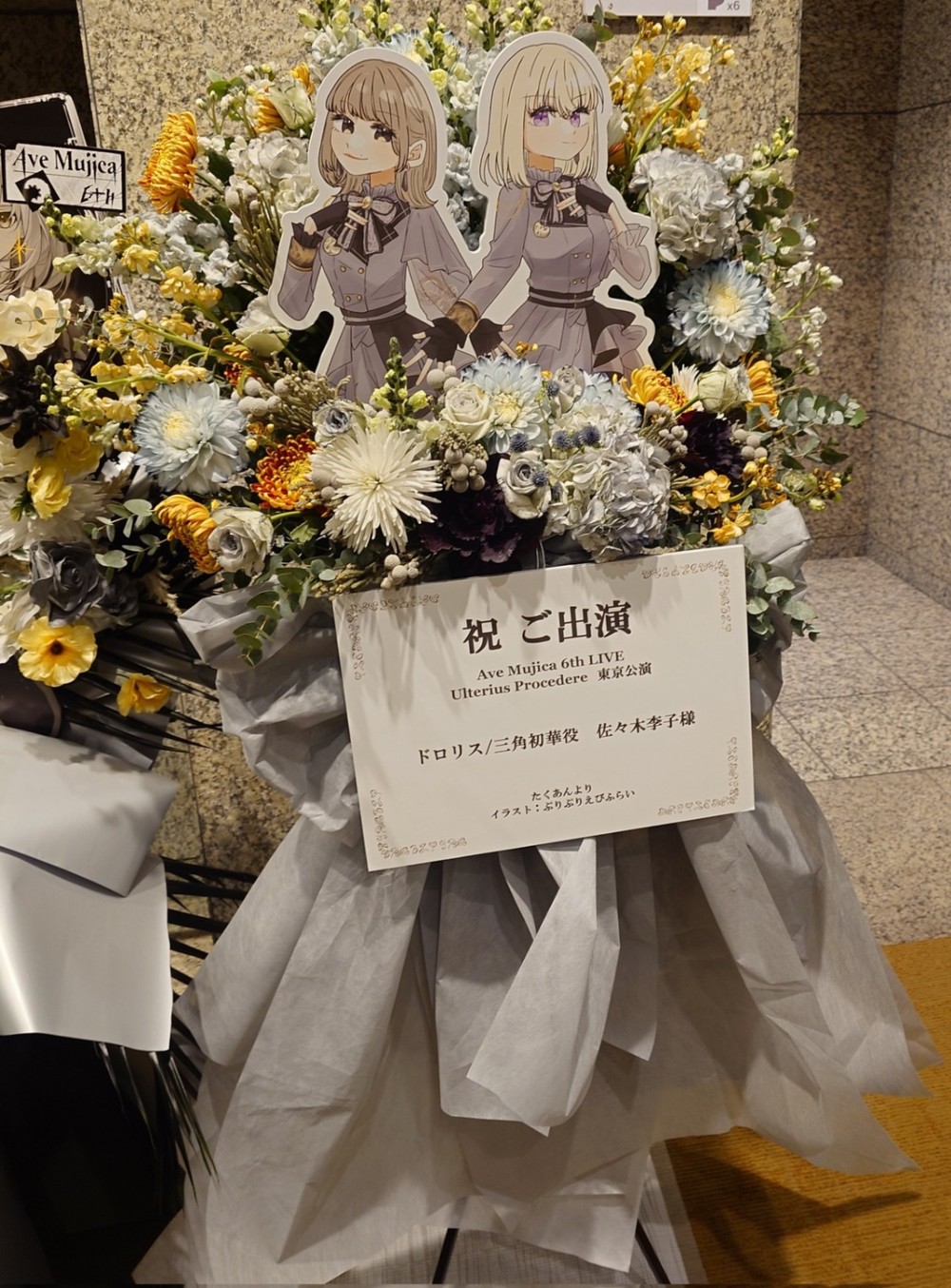 でも、演者さんが撮ってくれた写真だとお花で名前が見えなくなってしまったので、次の機会がある時は札の位置をもう少し高めにしてほしいかなと思いました!