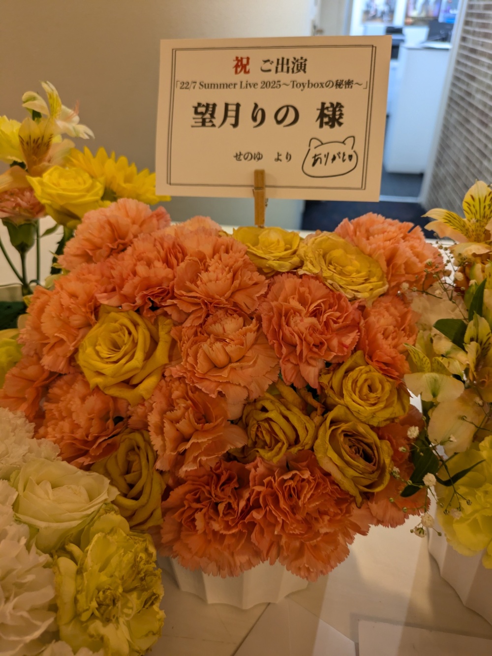 まあ、望月さんに直接「お花ありがとうー」と言ってもらえたし、メッセージも書いてくれたので、大成功でした。