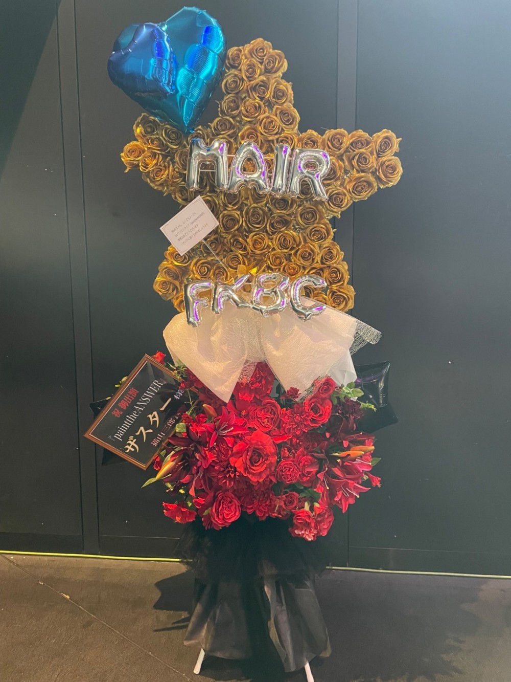 はじめてフラスタを企画したため、すべてが手探りな状態でのスタートでしたが、担当してくださった大川様のおかげで想像よりもずっとずっと素敵なお花を贈ることが出来ました。生花もさまざまな色・種類のお花を使っていただき、とても華やかな仕上がりになりました。大満足です。