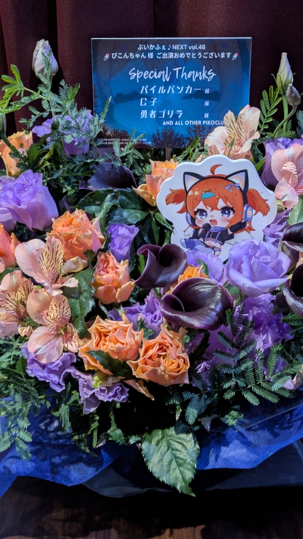 急遽、追加で楽屋花も注文しまして、こちらもご対応頂いて本当にありがとうございました!!