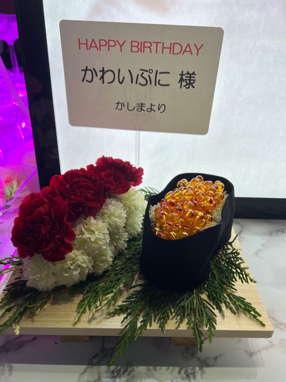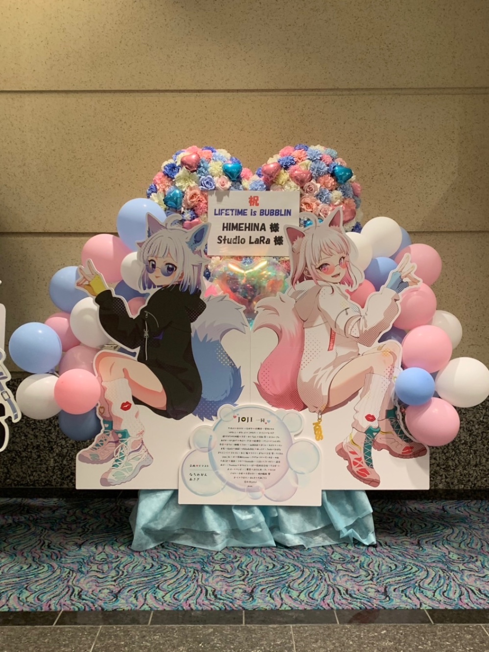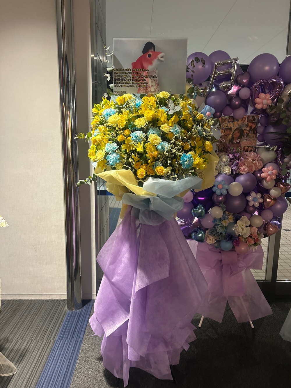 仲間と共同で複数のキャラクター、キャストに宛てたフラスタだったので、あえてにぎやかにしたい、カラフルにしたいという要望を叶えてくださりました。