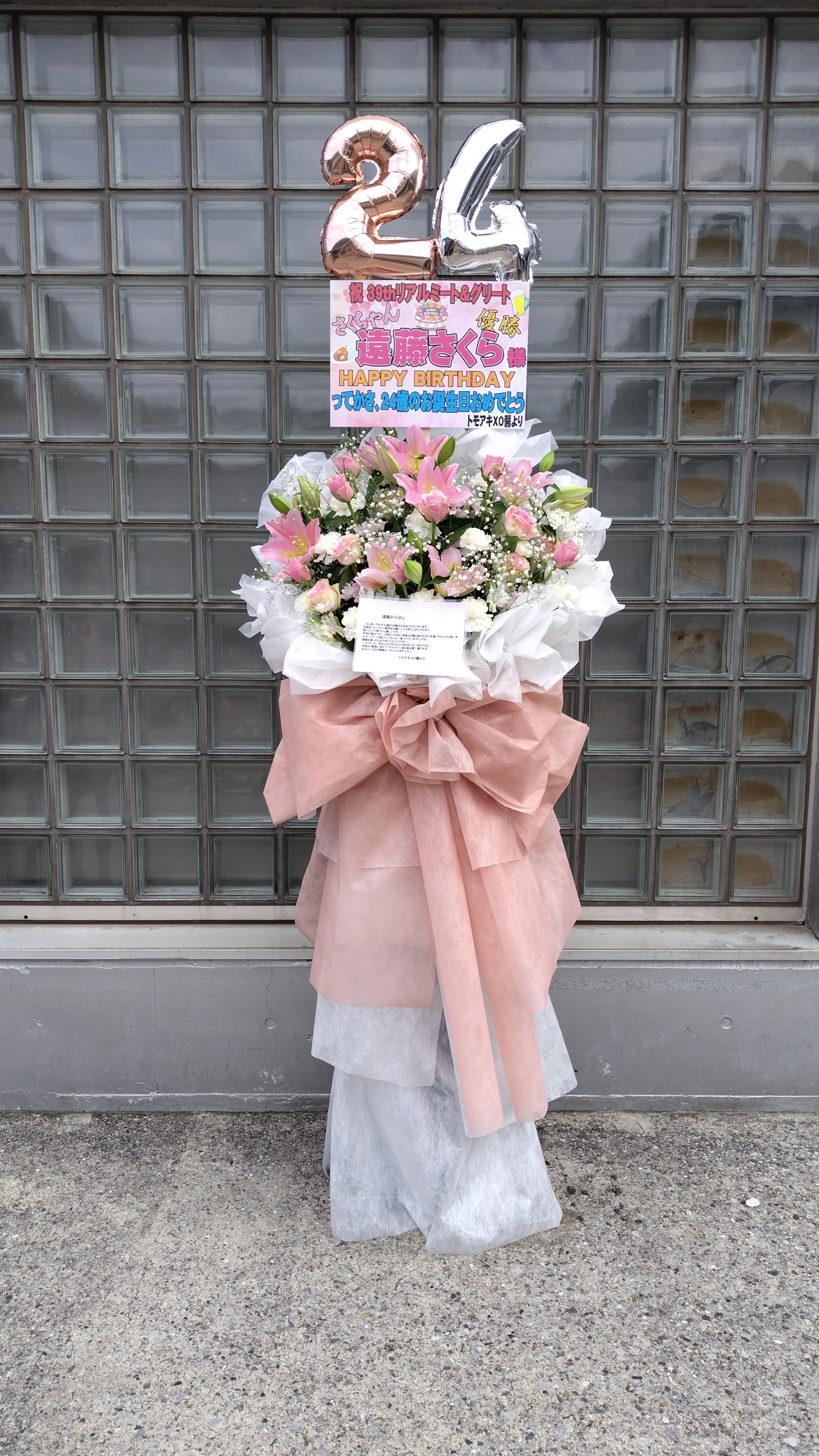 乃木坂46にフラスタや祝花を贈る際は、そのメンバーのテーマカラーや、乃木坂46のメンバー様の記憶に残るお花を是非ご用意下さい。食べ物やお花以外のお祝いの品を贈ることが禁止されている握手会・イベントが多いですので、フラスタや祝い花は唯一お客様の想いをお届け出来るツールです。また、メンバー様は贈られたお花の色形、デザインと、お客様の顔をペアで記憶されます。多くのお客様と握手をされる中で、花はお客様の事を簡単に覚えることが出来るツールでもあるのです。是非オーダーメイドのフラスタ・祝い花をお届け下さい。最近はバルーン付きのスタンド花が多くお届けされていますので、逆にバルーンをお付けされないフラスタの方が舞台公演の印象に残ります。Sakaseruでは日本のトップクラスのフラワーデザイナーが一つ一つオーダーメイドでフラスタをお作り致しますので、お客様の想いをお伝え下さい。