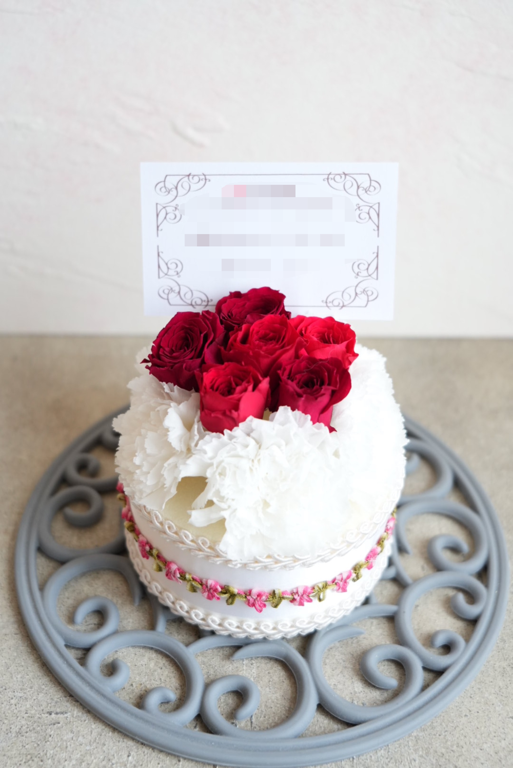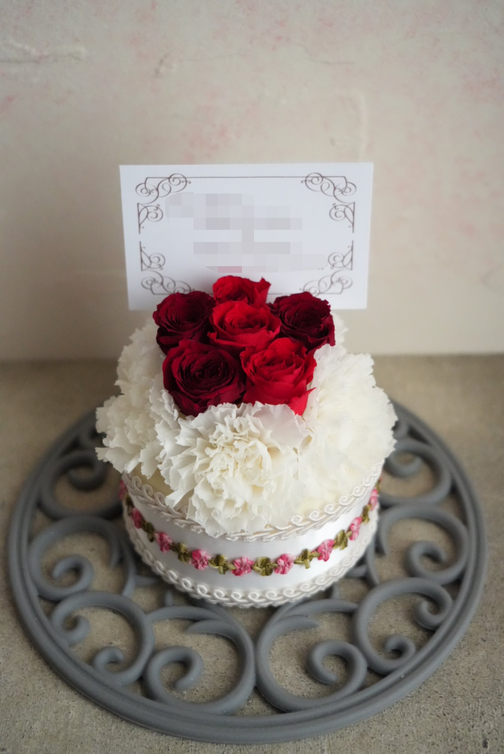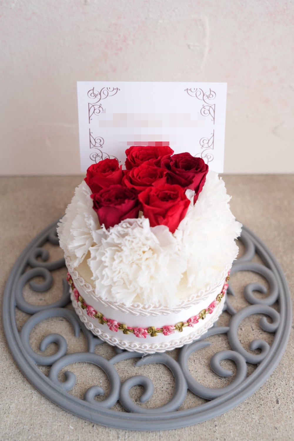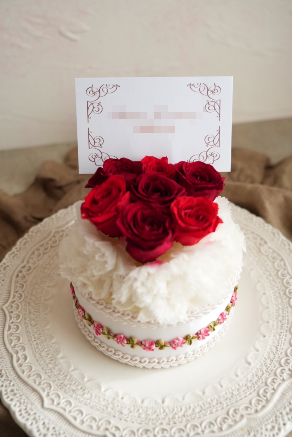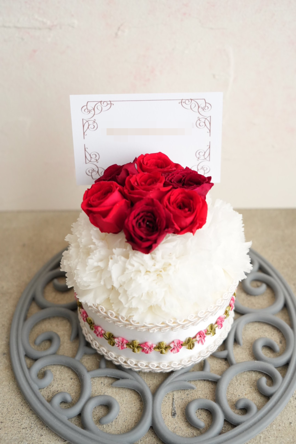 - 文字入れできる プリザーブドフラワーのフラワーケーキ S