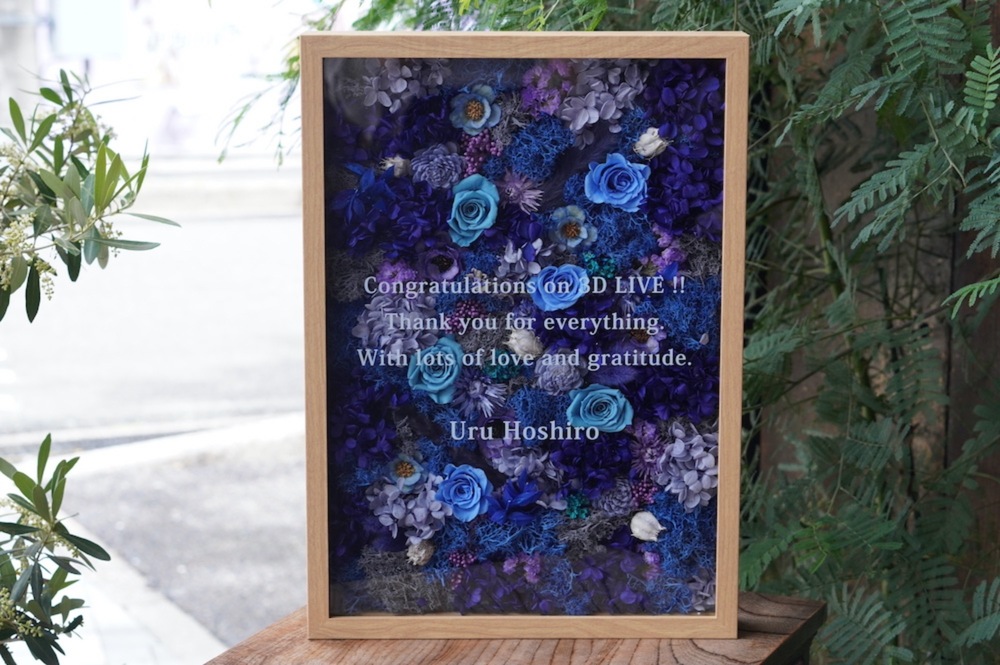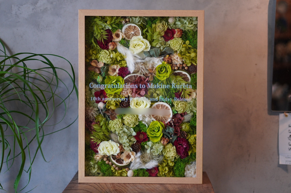 ドライフラワーとプリザーブドフラワーをガラスの中に閉じ込めました。全面がお花の、お花畑のようなWallタイプ。お花の色味は、贈り先様のイメージカラー等ご希望に合わせてお作り可能です。ガラス面には文字入れもできるので、お祝いや記念のギフトにぴったり。届いたら置いて飾るだけなので、お手入れ不要。お忙しい方にも喜ばれるフラワーギフトです。