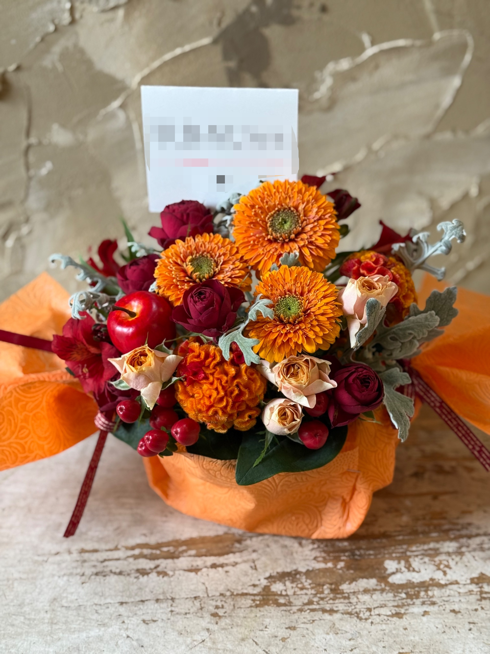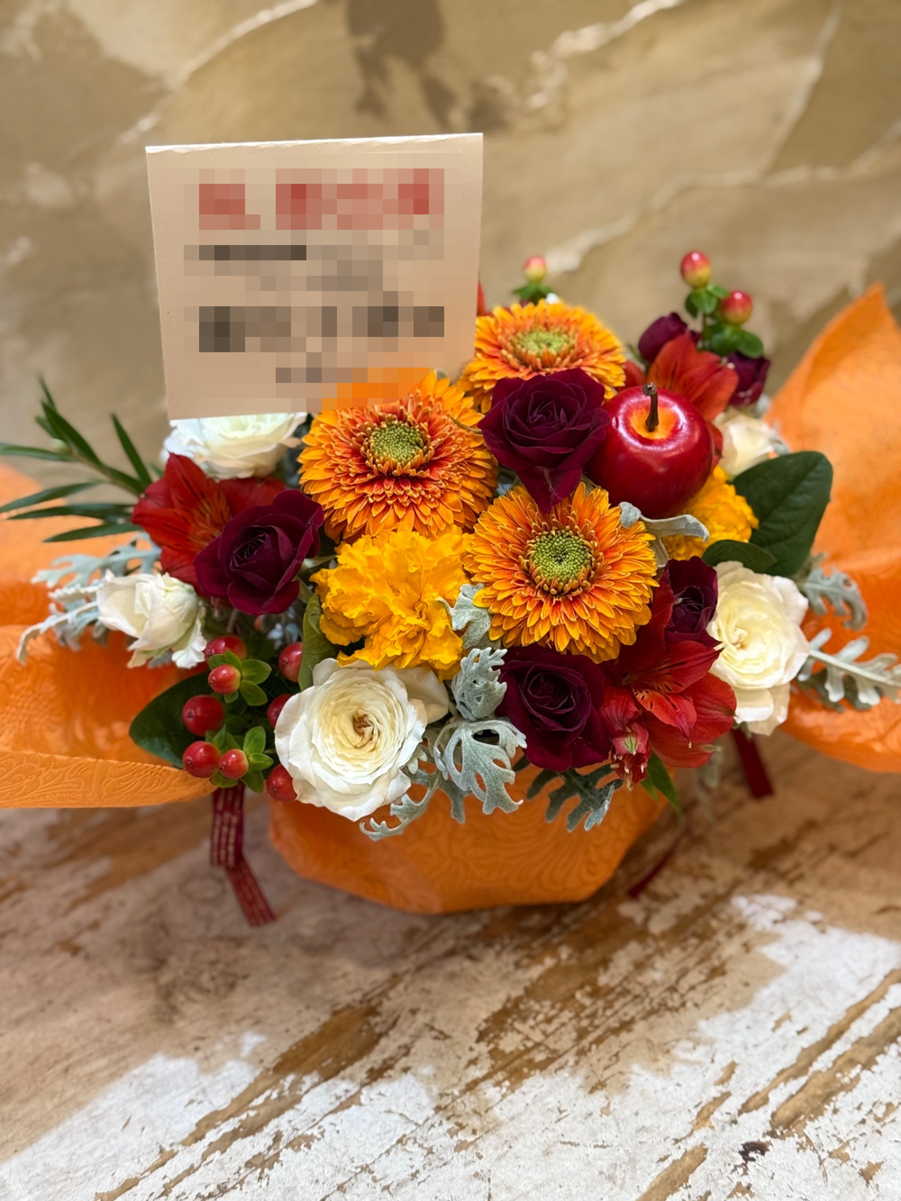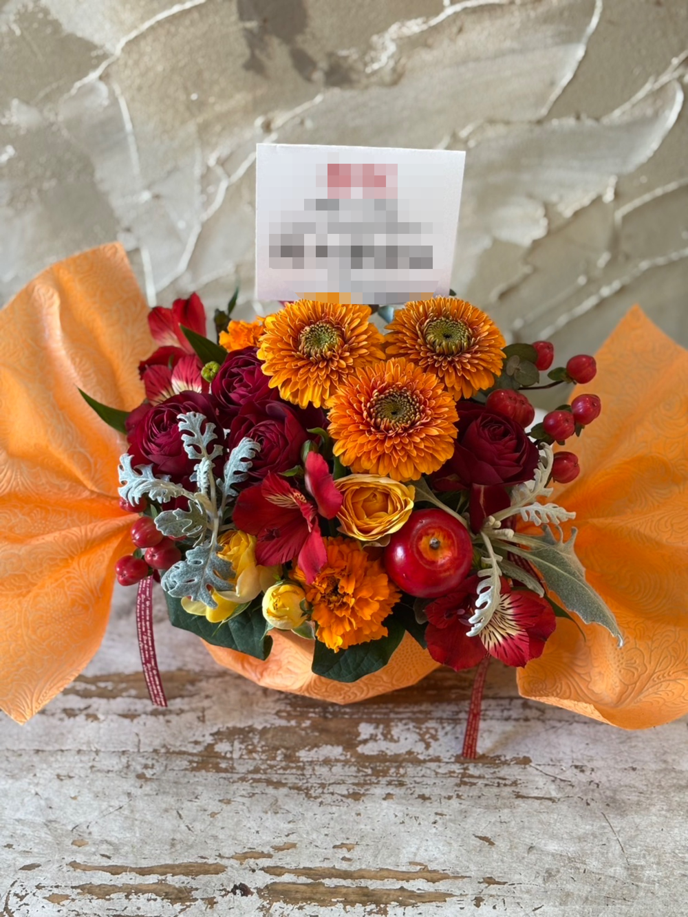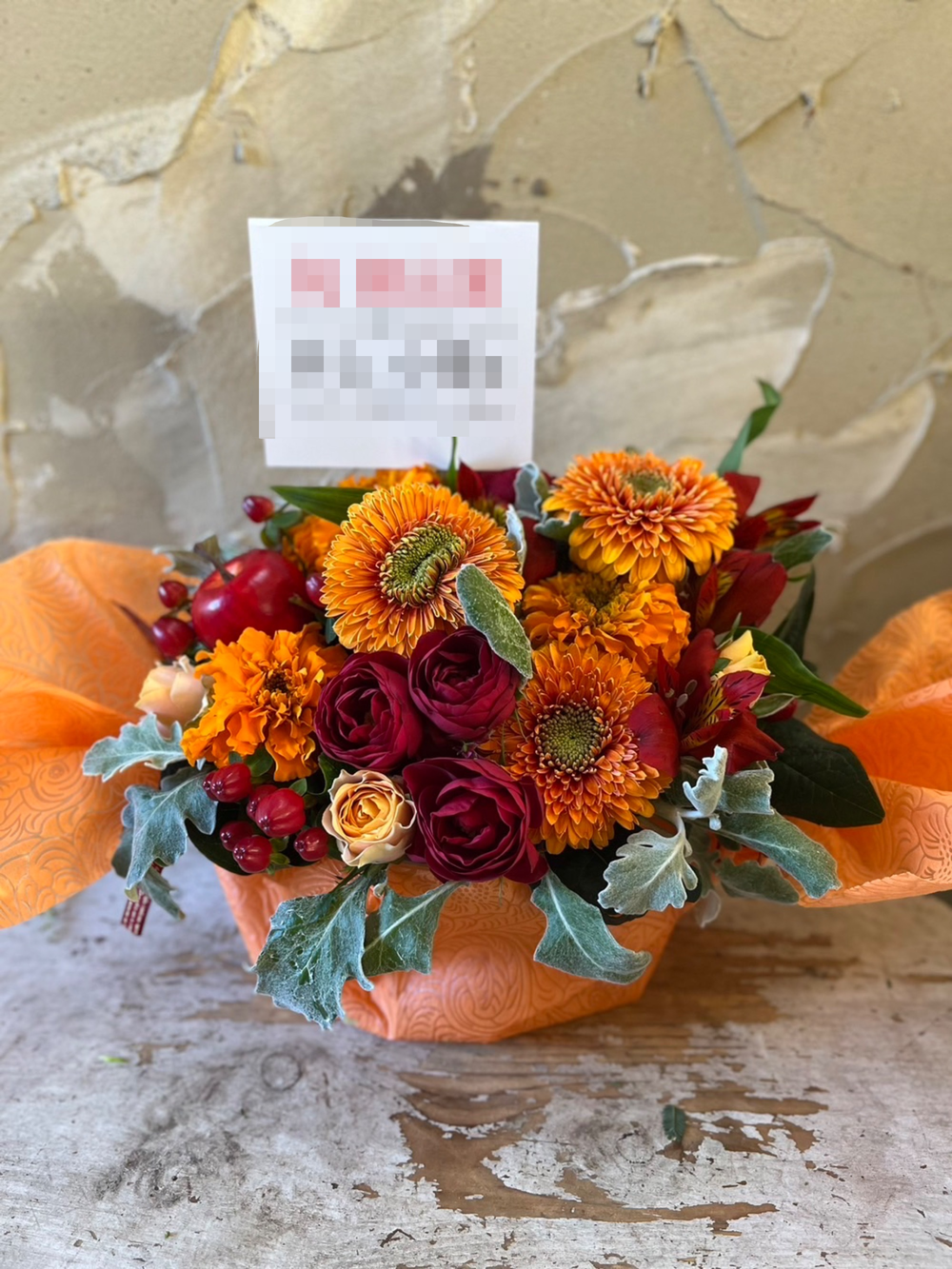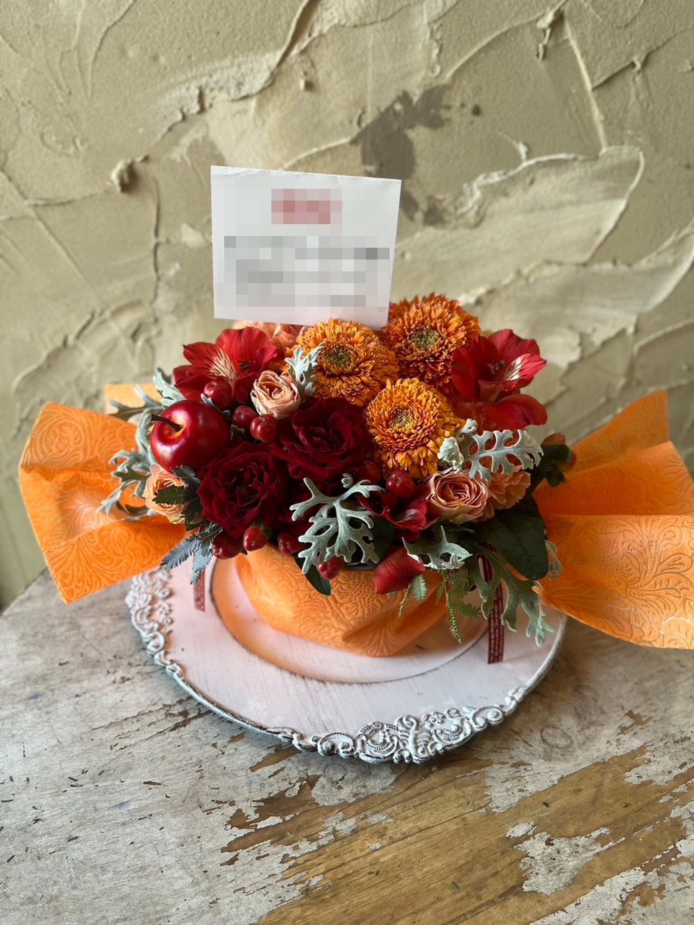 季節によって使用できるお花が異なるため、雰囲気が異なる場合があります。また、フラワーデザイナーが撮影した場所、角度によっても印象が異なることがあります。恐れ入りますが予めご了承ください。