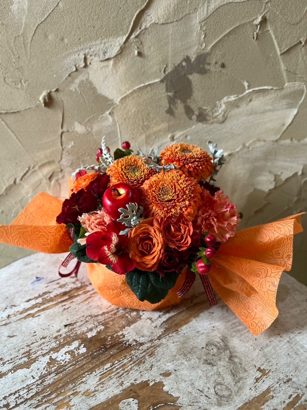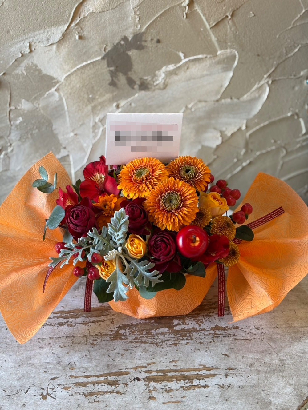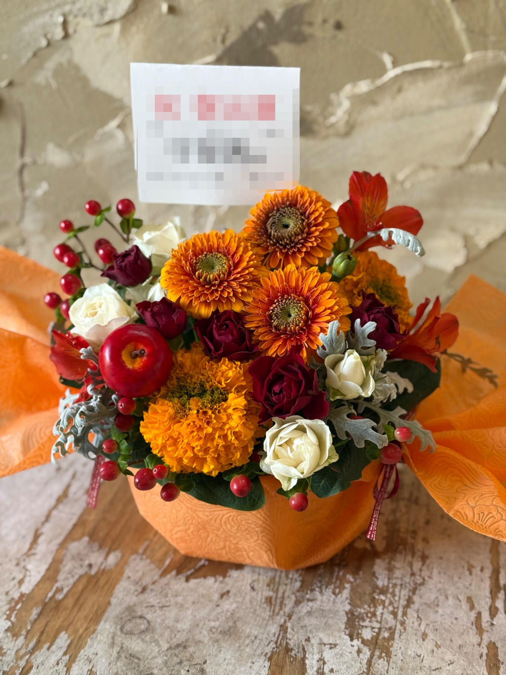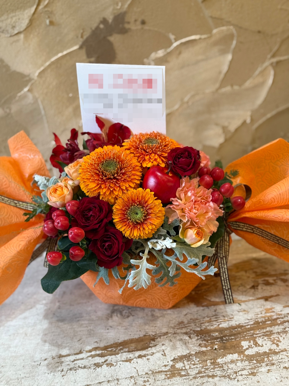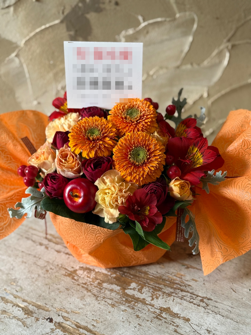 季節によって使用できるお花が異なるため、雰囲気が異なる場合があります。また、フラワーデザイナーが撮影した場所、角度によっても印象が異なることがあります。恐れ入りますが予めご了承ください。