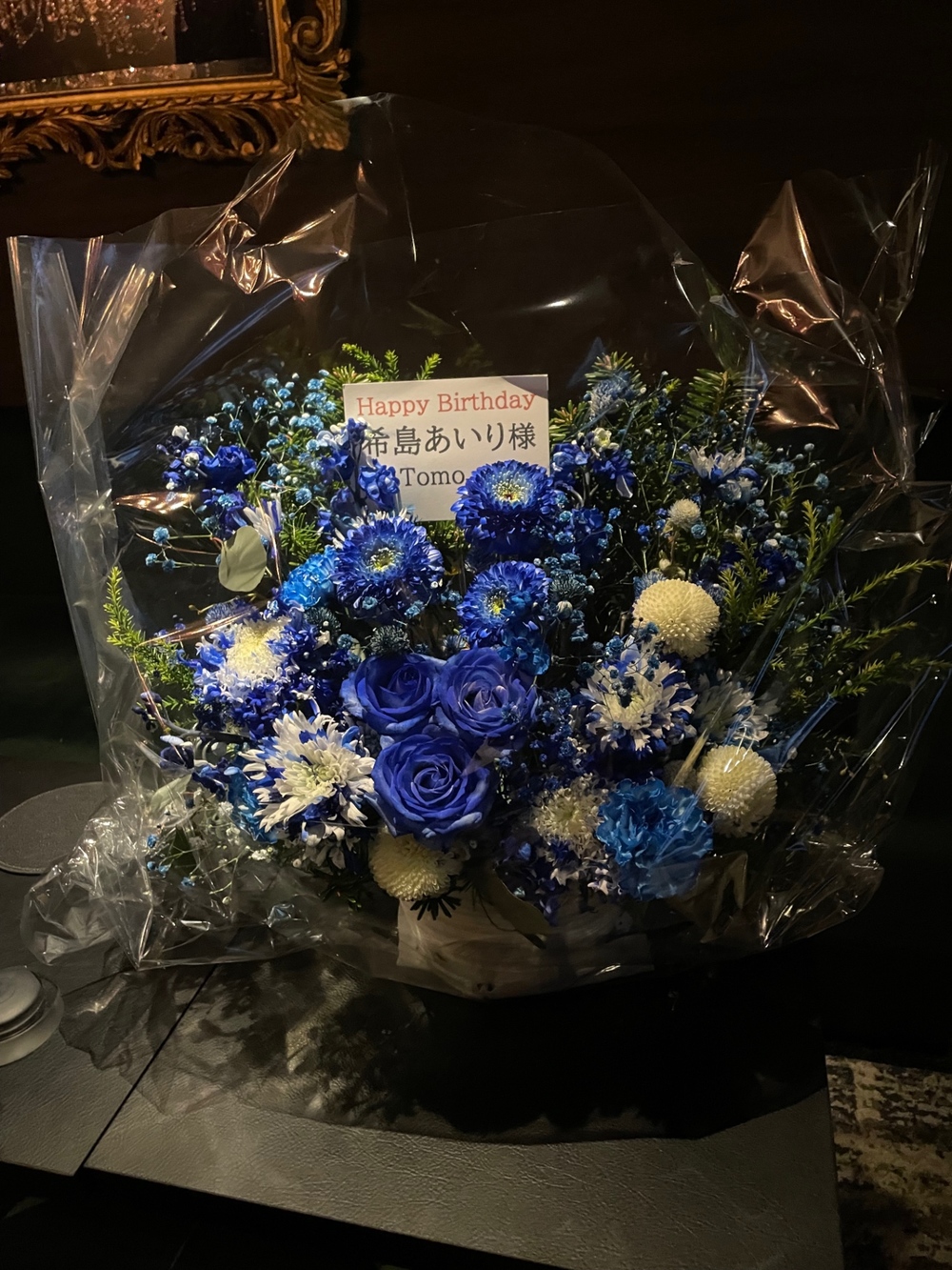 「お祝いの気持ちを込めて」ブルーの薔薇が上品な出演祝い花・楽屋花