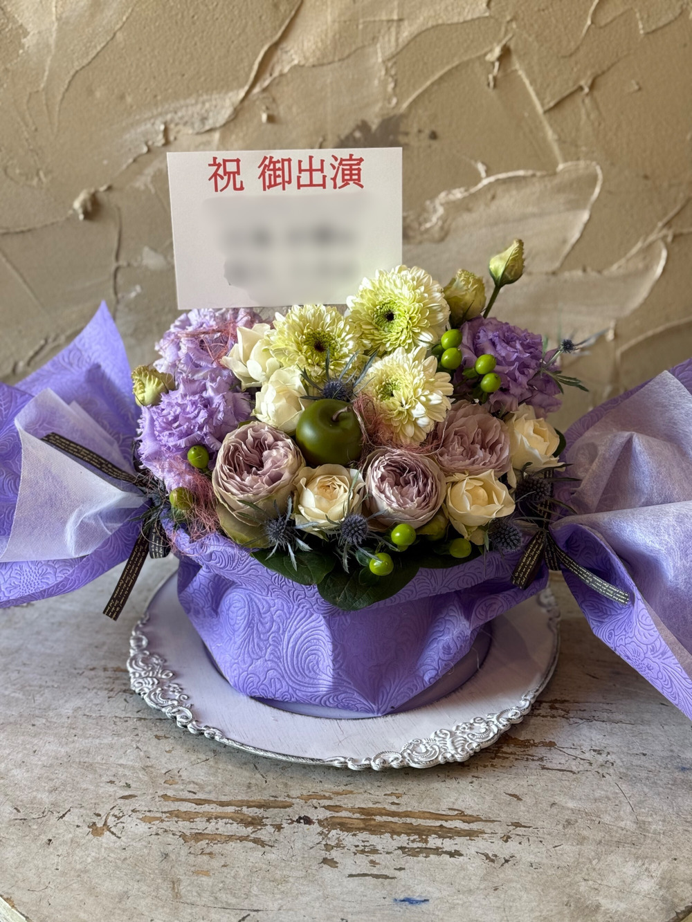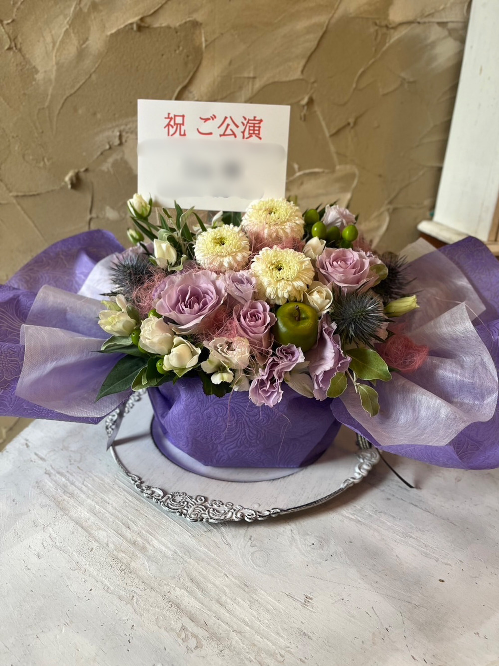 贈り先さまのイメージカラーや雰囲気、ご公演のイメージに合わせて世界に一つのお祝い花をお作りいたします。
