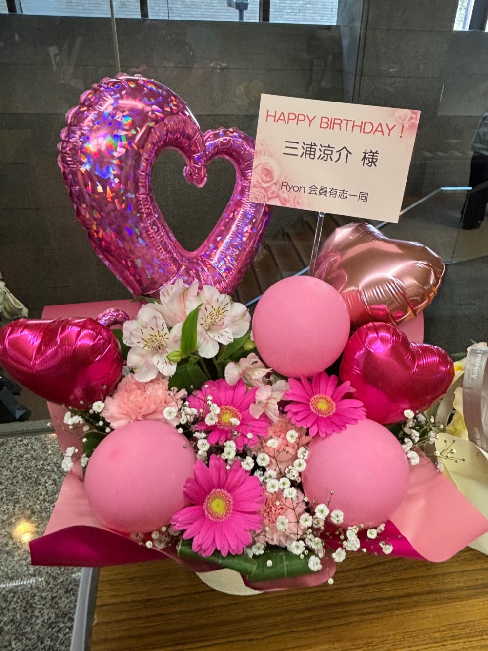 見本を見てとても可愛いと思って注文しました。実物も華やかで、バルーンも花も色がとても綺麗でした。札も可愛く作っていただいて、お誕生日のお祝いにぴったりでした。