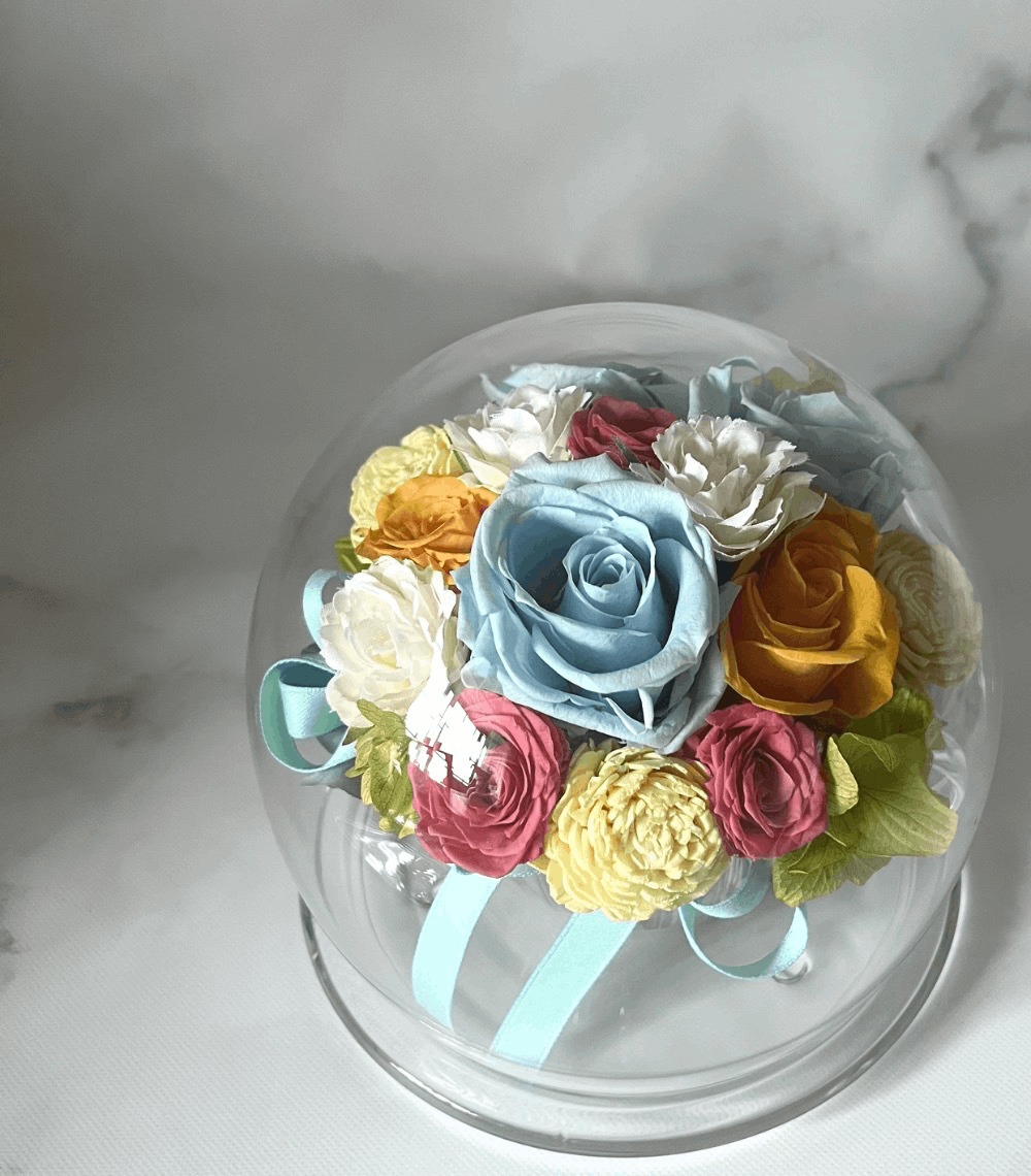 生花のトレジャーボックスアレンジ ブルーホワイト M
