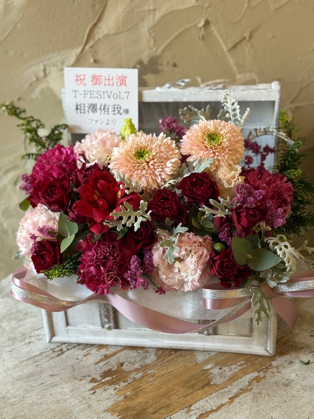 生花のトレジャーボックスアレンジ 赤ホワイト S