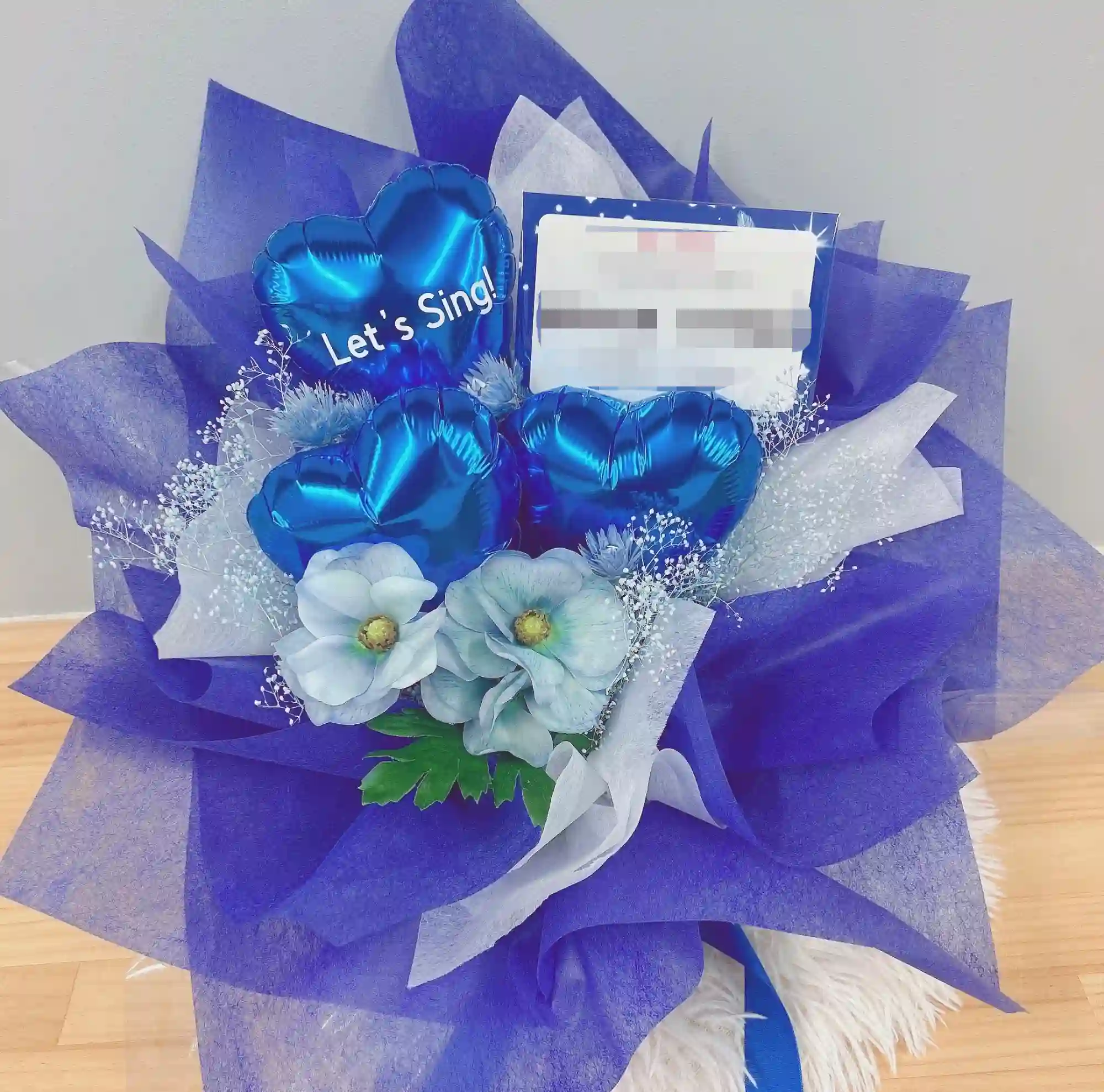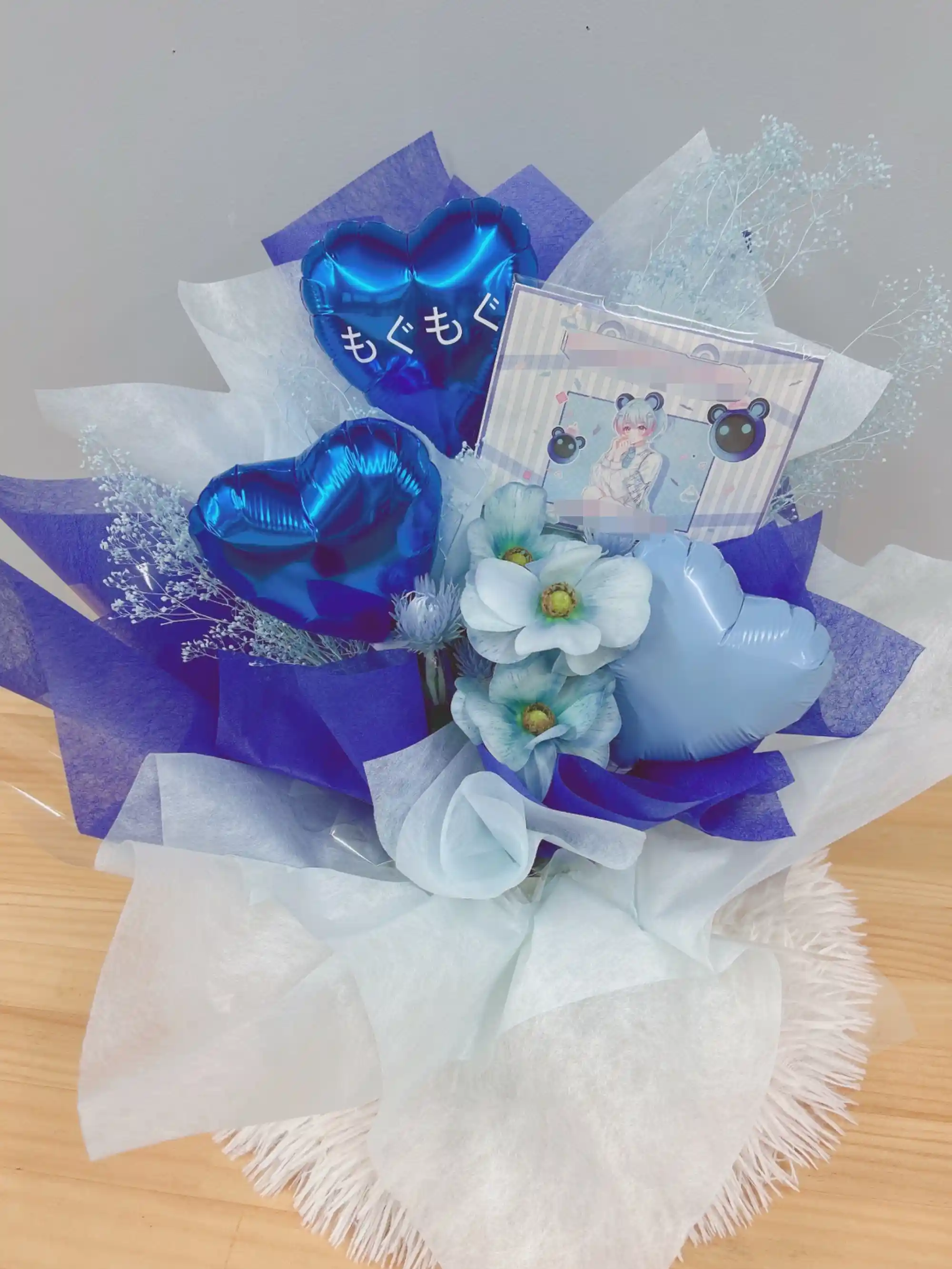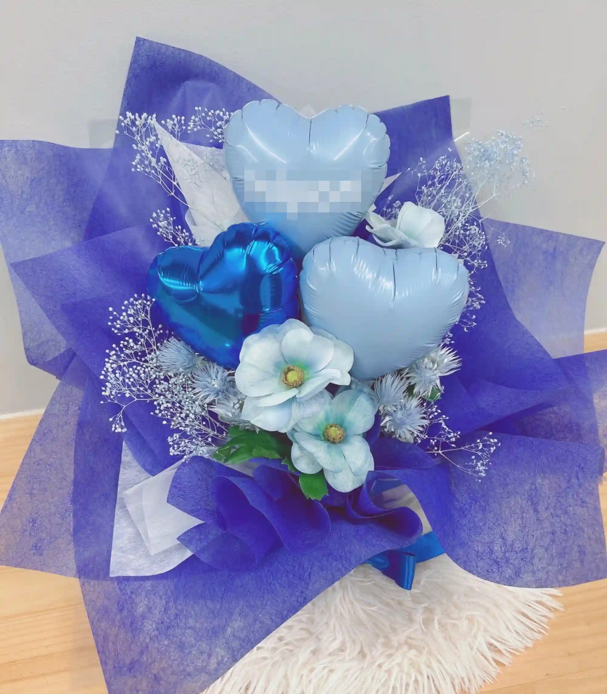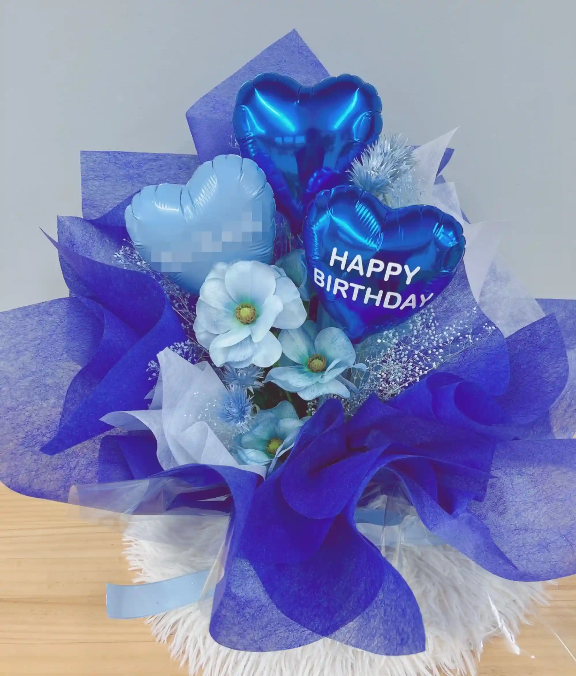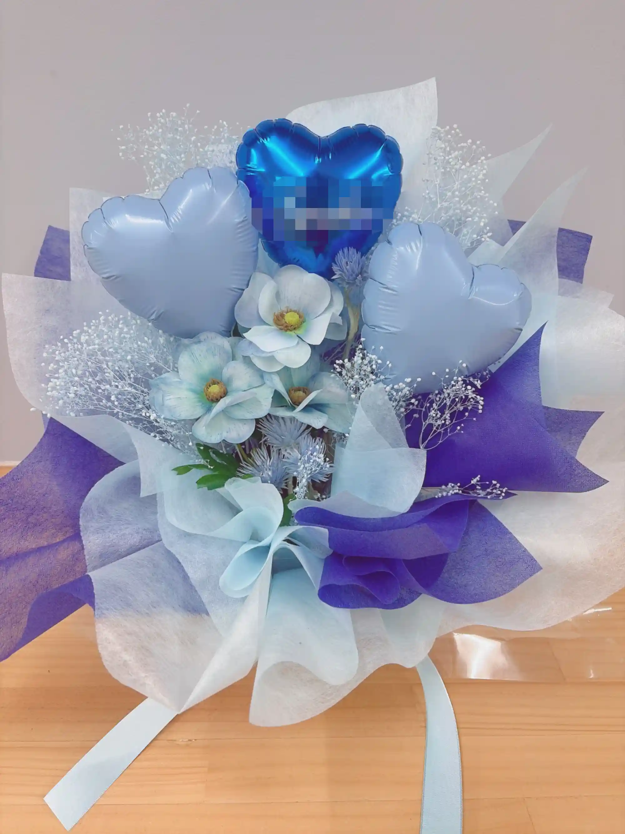 ハートバルーンの生花アレンジ ブルー
