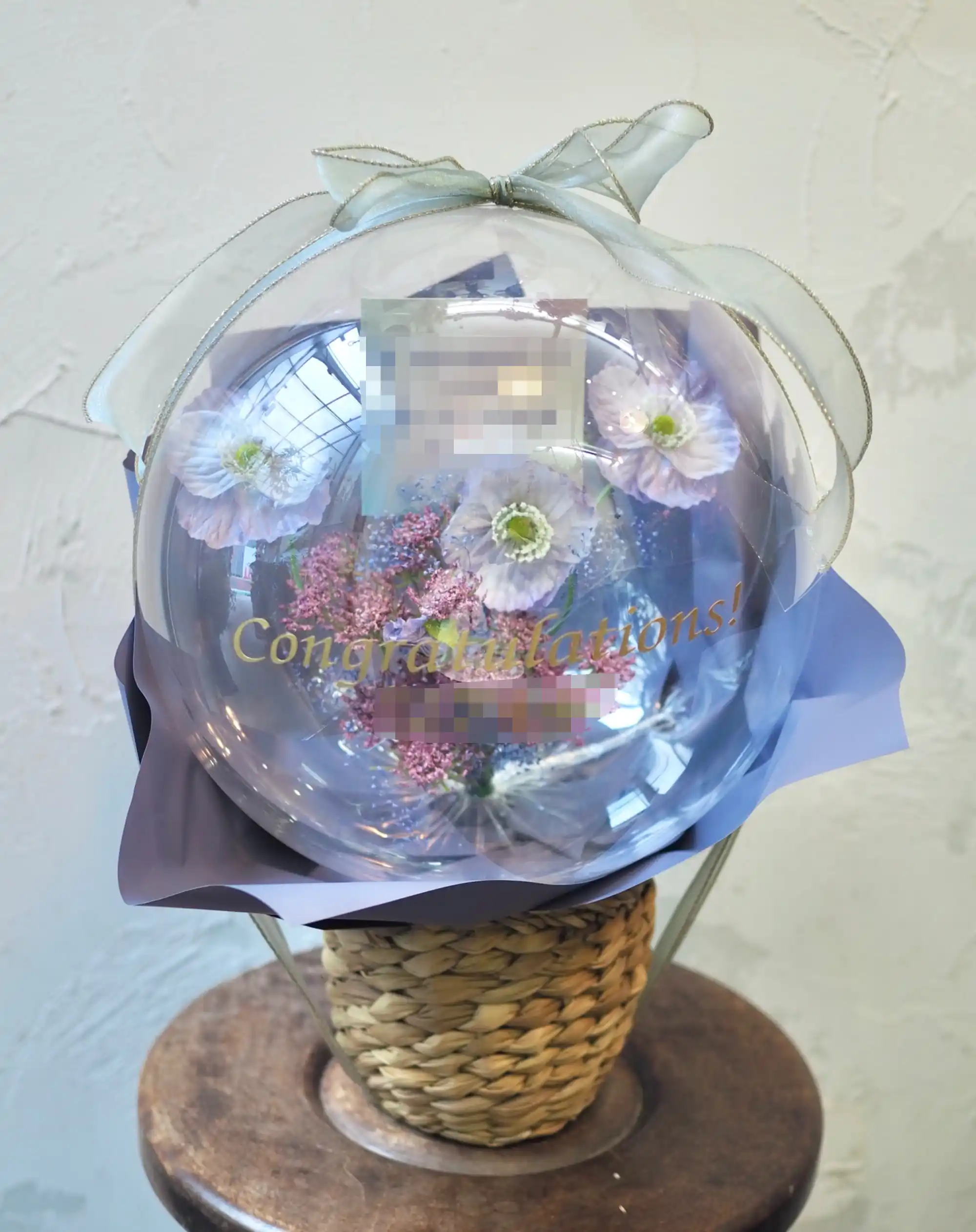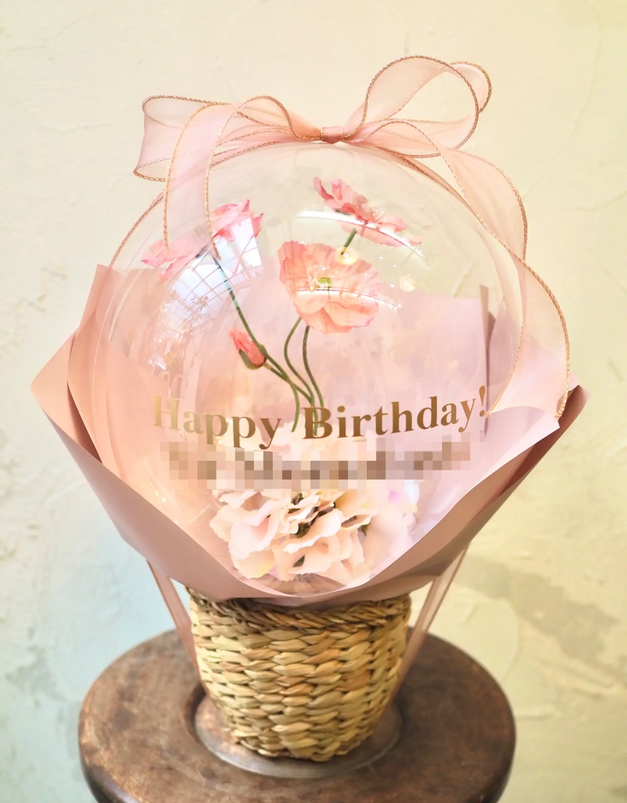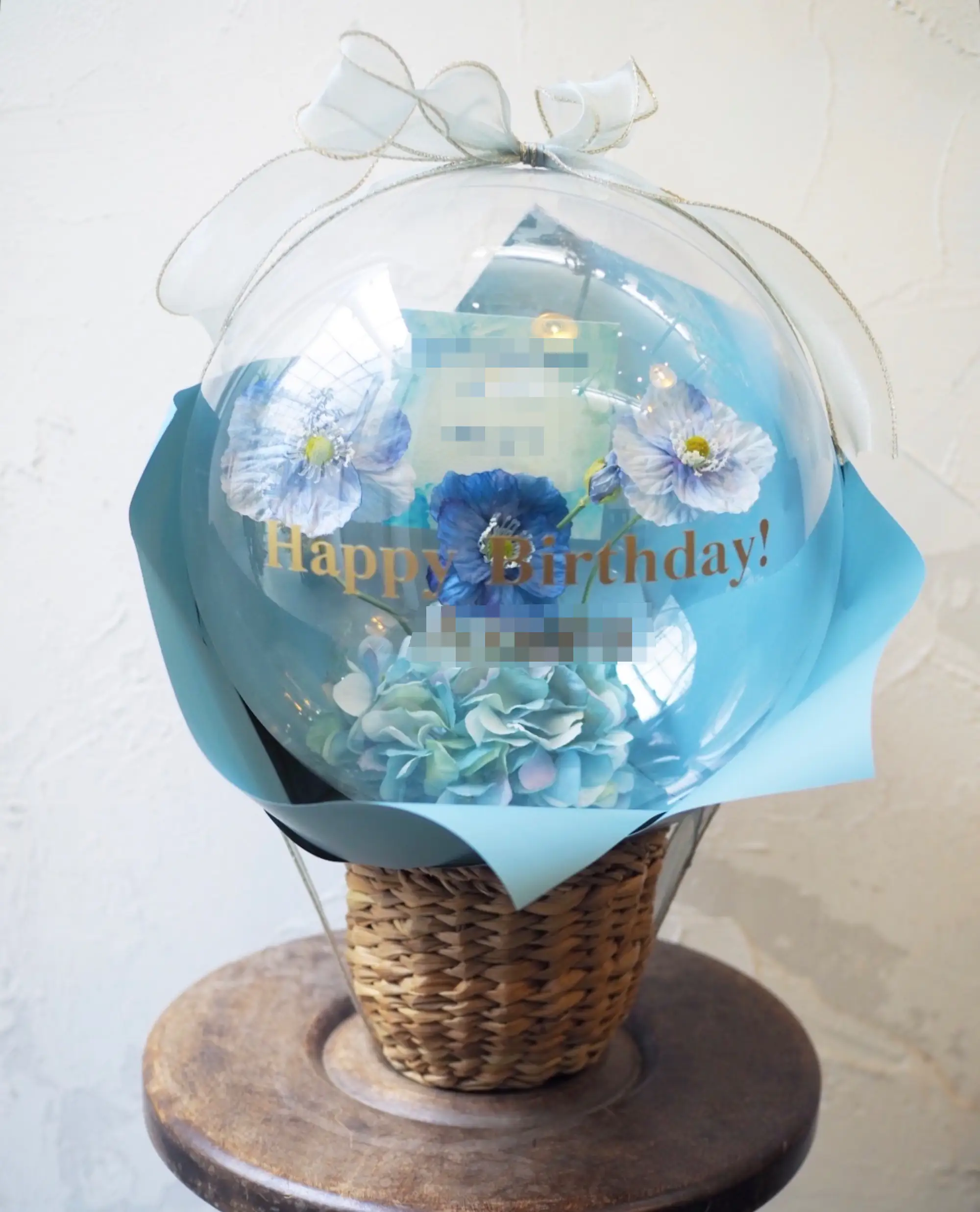 アートフラワーをナチュラルなバスケットにアレンジしたバルーンフラワーを、可愛くラッピングしてお届けします。バルーンには推しのお名前や公演タイトル、応援メッセージなどの文字入れが可能です。推し活シーンにぴったりの世界にひとつだけのフラワーギフトに。ライブ・舞台・イベントなど、大切な推しの晴れ舞台を華やかに彩る公演祝いとしておすすめです。