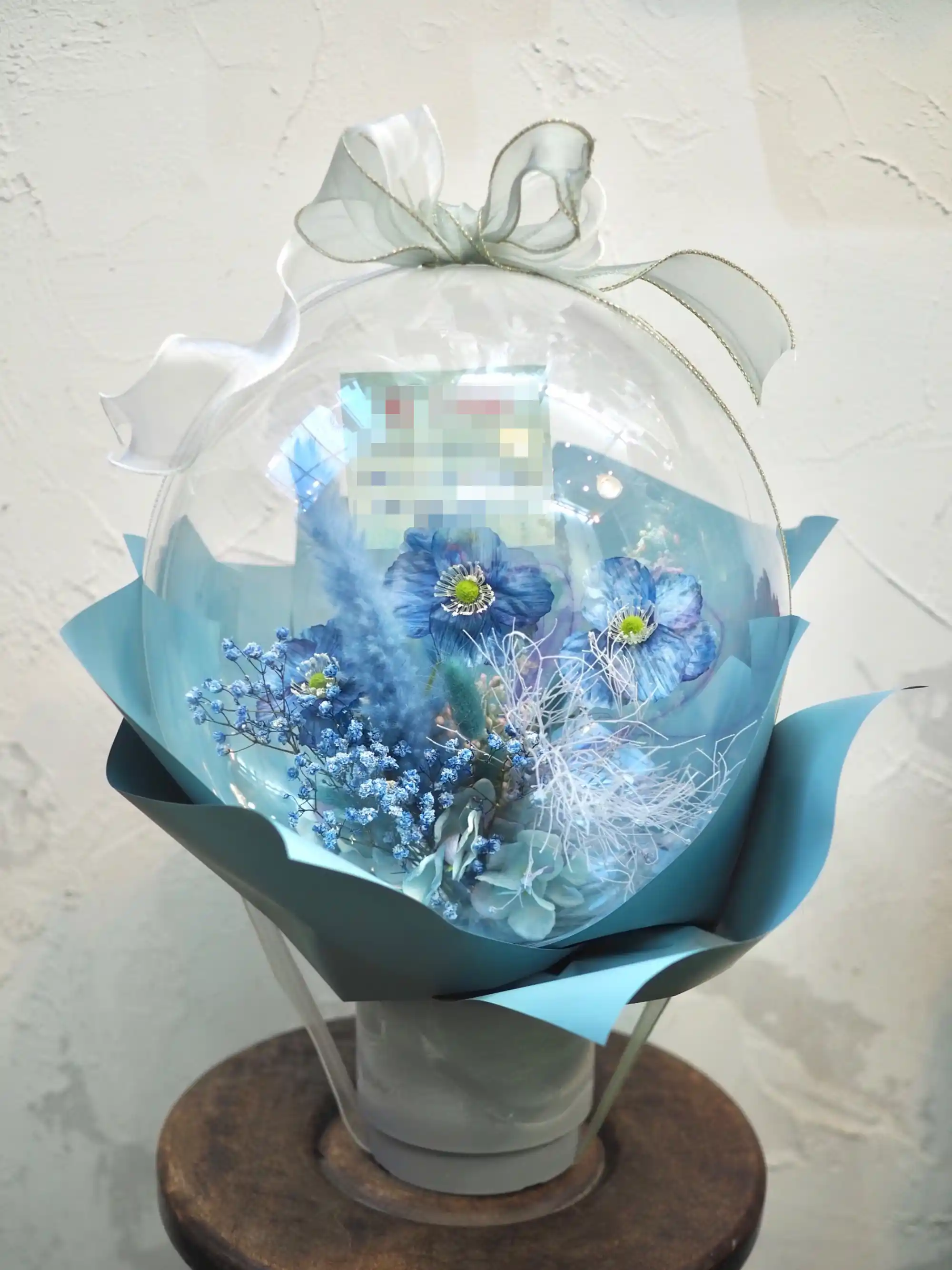 ラッピングが選べるラウンドの生花アレンジ ブルー S