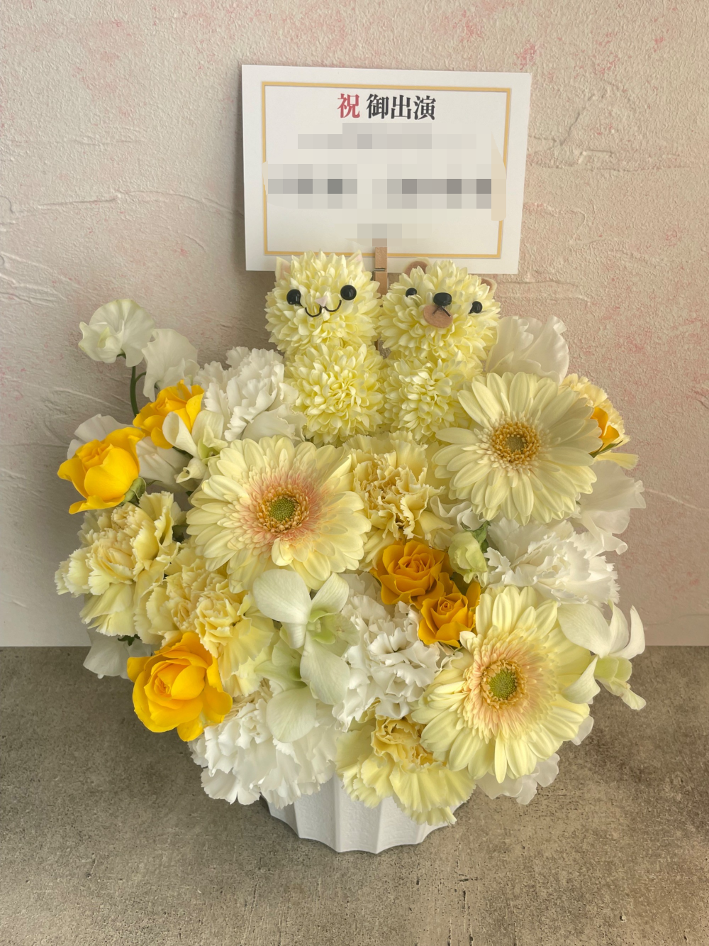 季節のお花で春らしさを表現した ご出演祝い花・楽屋花