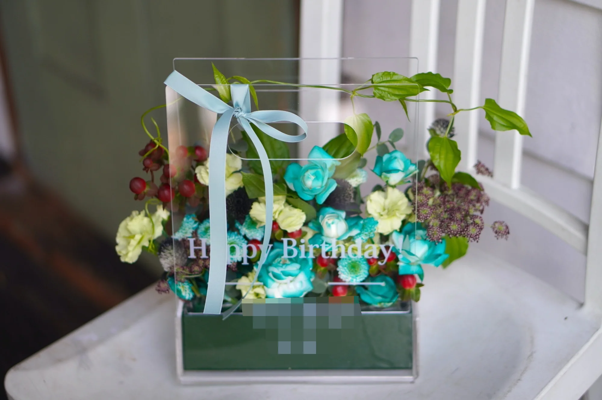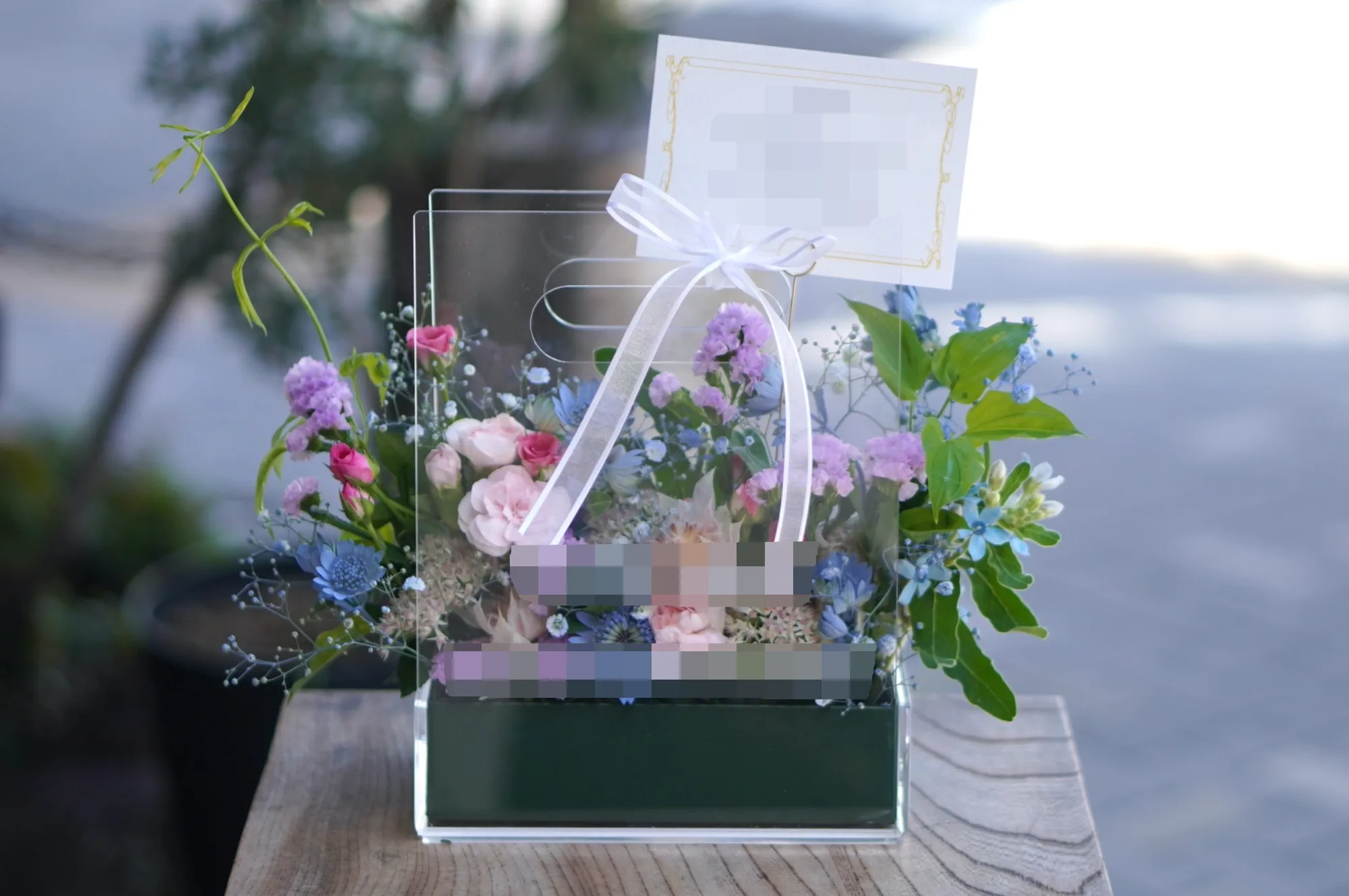 生花のトレジャーボックスアレンジ ブルーホワイト M