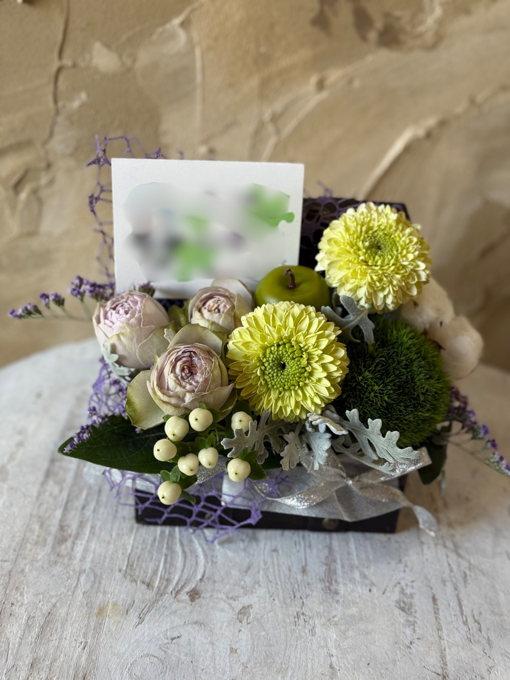 - 【冬限定】生花のトレジャーボックスアレンジ くすみカラー S