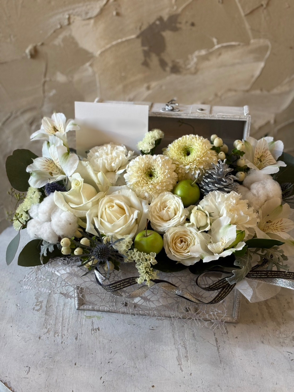 - 【冬限定】生花のトレジャーボックスアレンジ ホワイト M