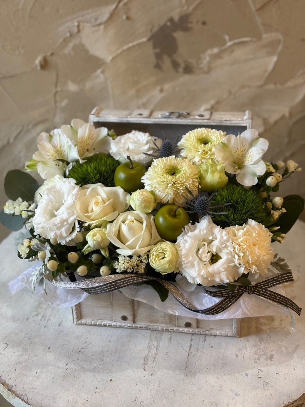【冬限定】生花のトレジャーボックスアレンジ ホワイト M