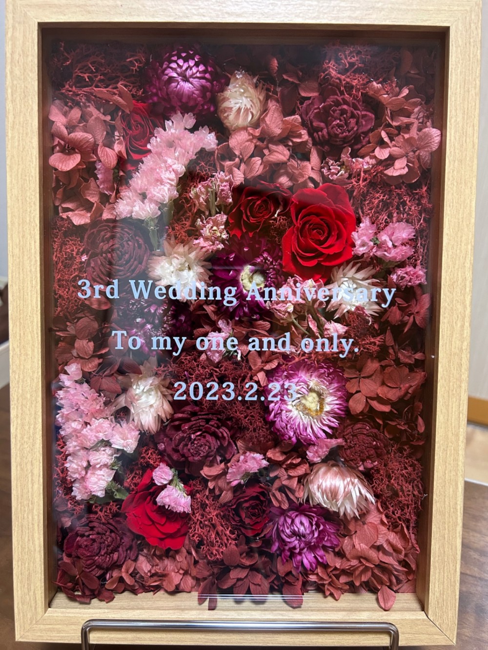 ドライフラワーとプリザーブドフラワーをガラスに閉じ込めました。