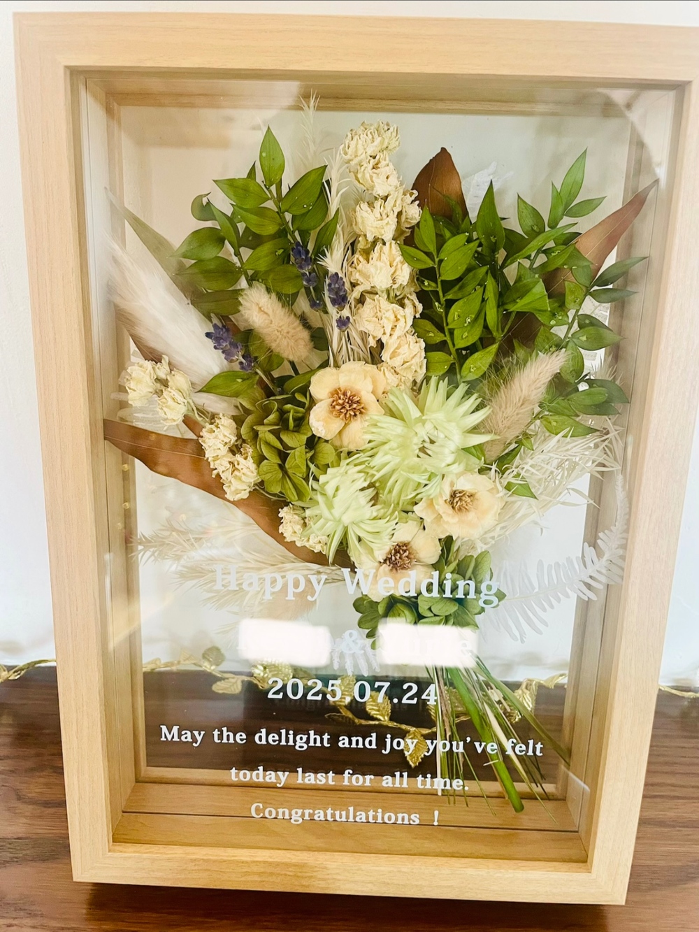 縁起のよい花言葉を持つ花を取り入れてくれて感激しました。