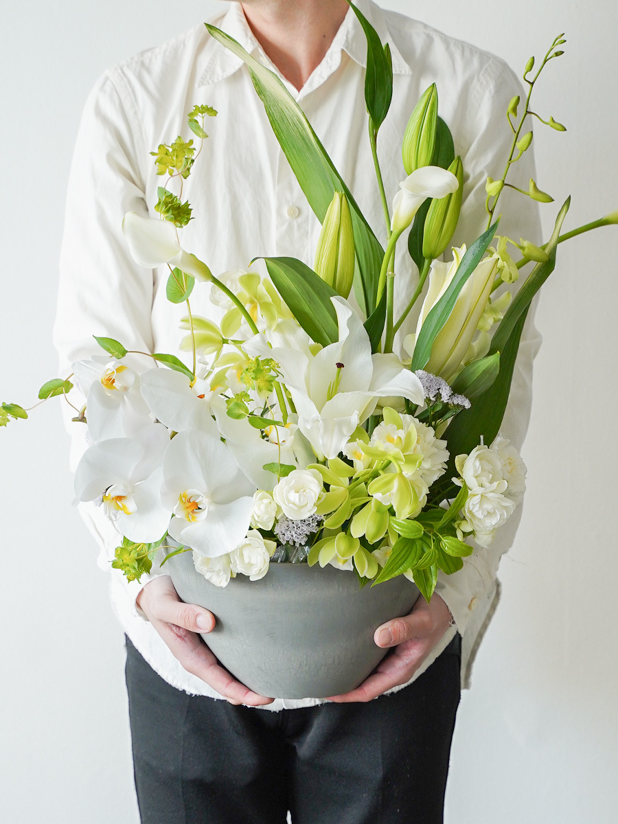 お花の仕入れから送り主さま・お届け先さまを想い、心を込めて制作したオーダーメイド事例です。