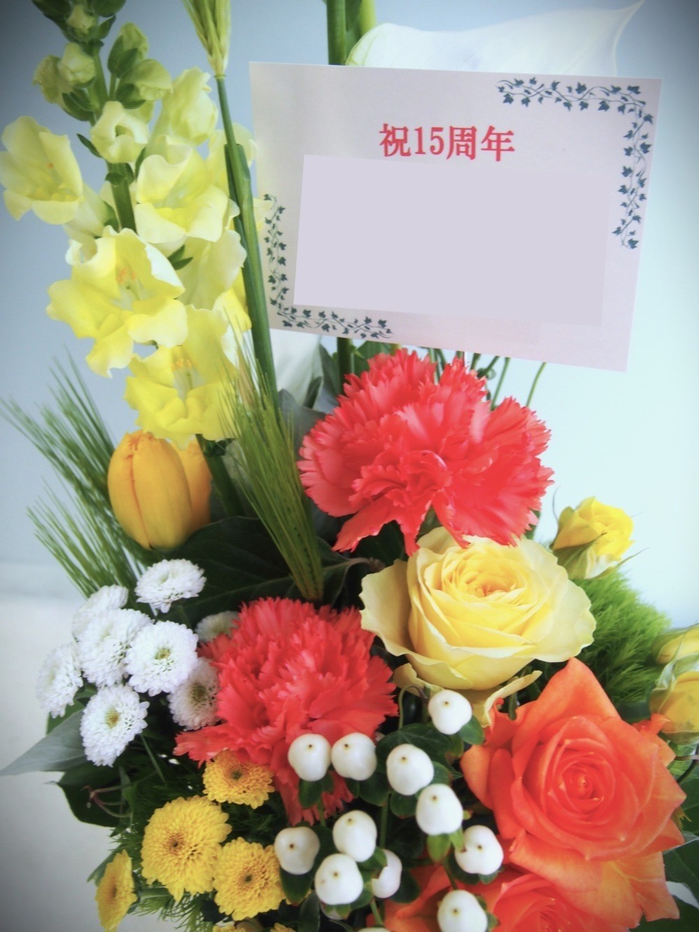 飲食店15周年 ビタミンカラーでおつくりした祝い花