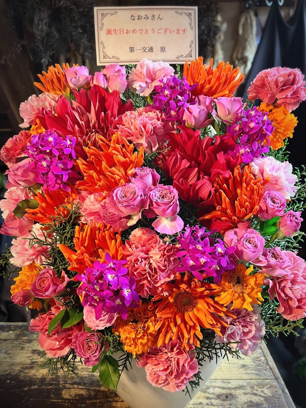 「元気になってね」ボリュームたっぷり華やかなお花でおつくりしたバースデーフラワー