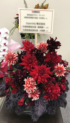赤と黒がロゴカラーの広告代理店様にお届けした周年祝い花