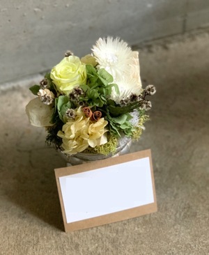 「施設の開所祝いに」落ち着いたお色味のプリザーブドフラワー祝い花