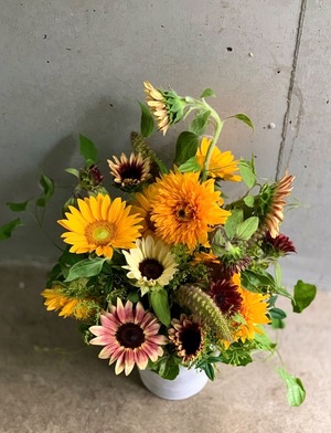 「ありがとうの想いを込めて」ひまわりに拘った祝い花