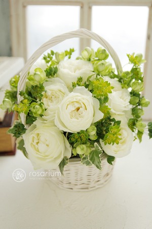「大切なご両親様へ」白とグリーンの結婚記念日祝い花